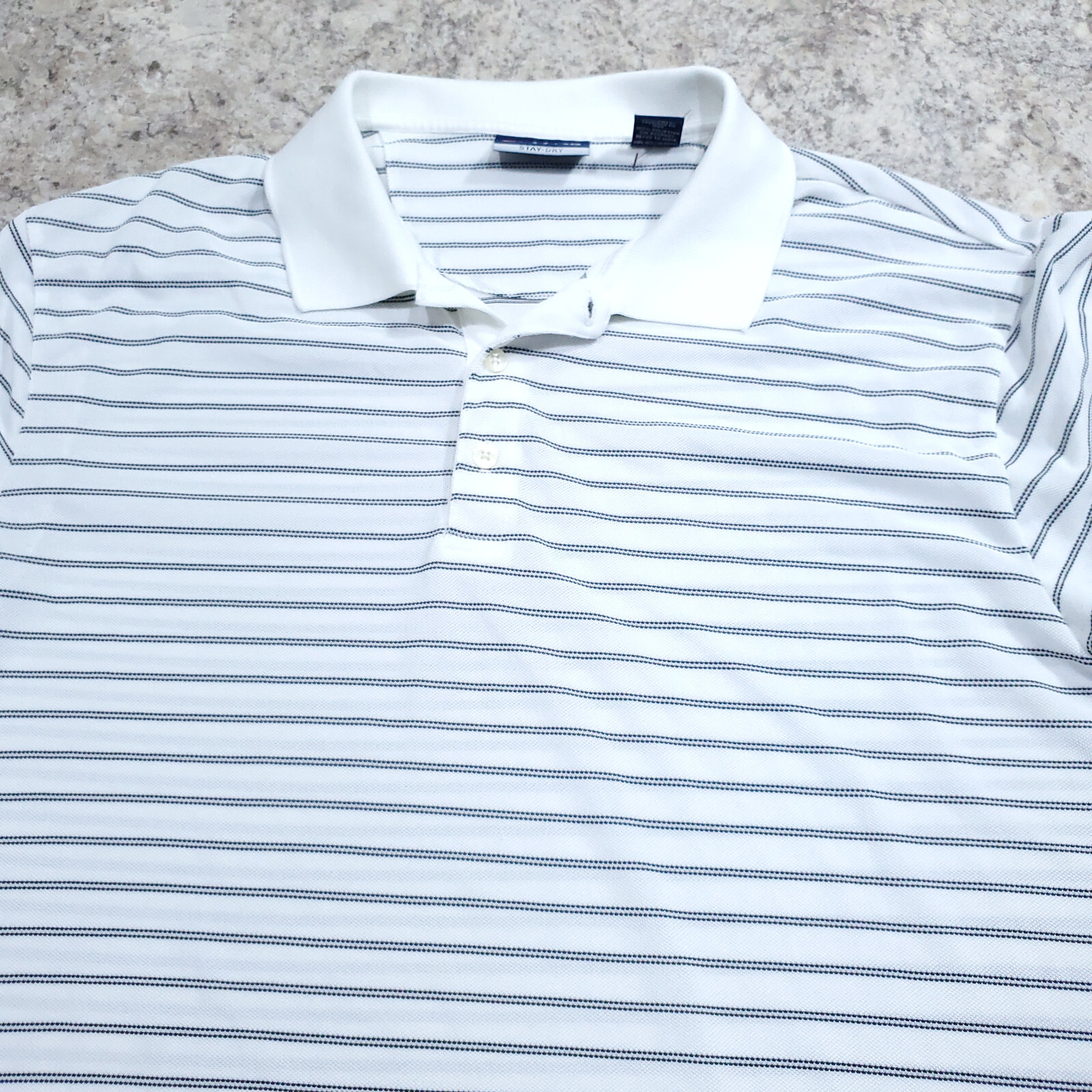 Chaps Polo Shirt Mens Medium White Striped Microfiber Dry Golf Sports Outdoor M