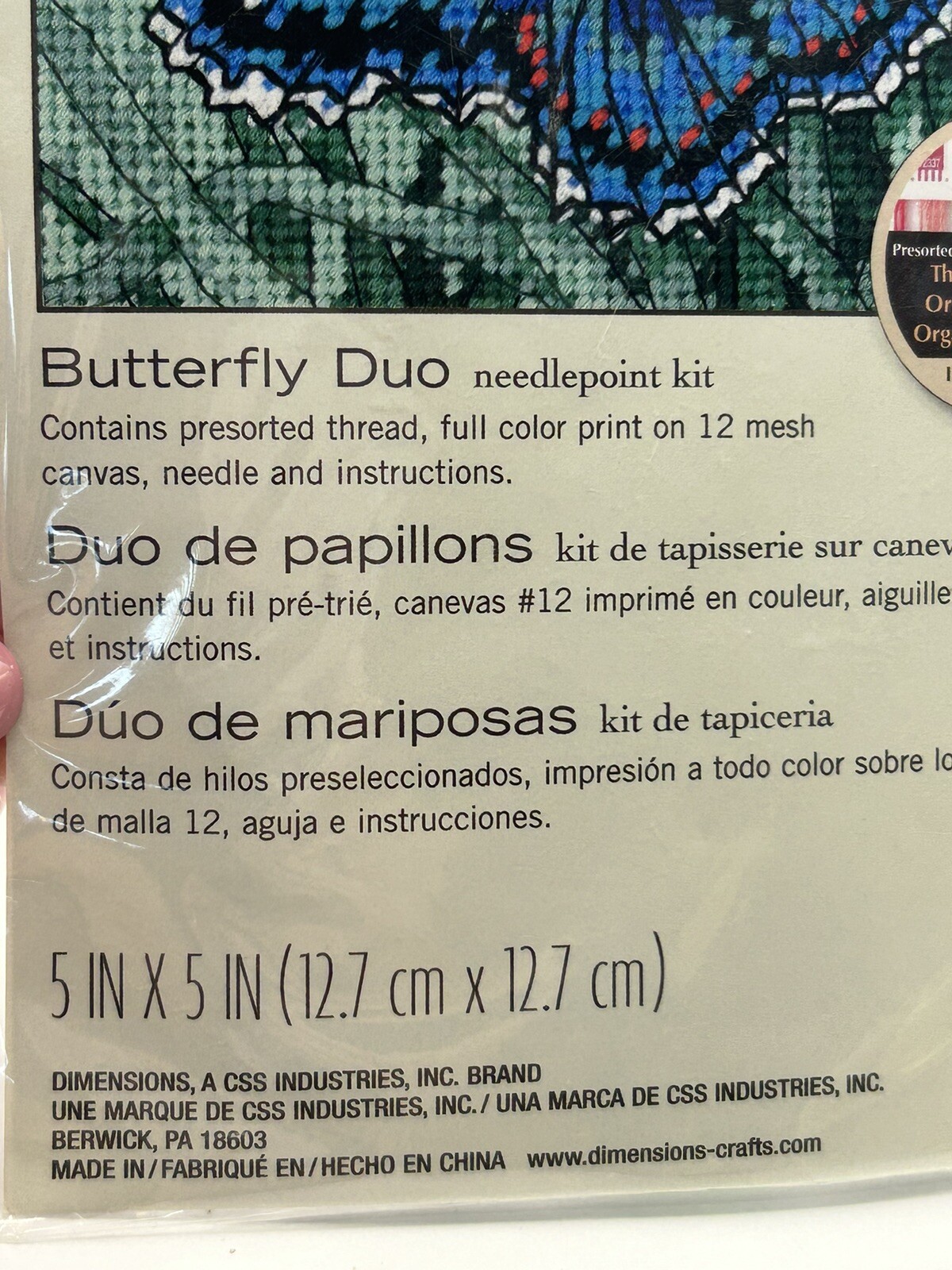 как выглядит Dimensions 7183 New Sealed Needlepoint canvas Blue Butterfly Duo Cotton 5x5 фото