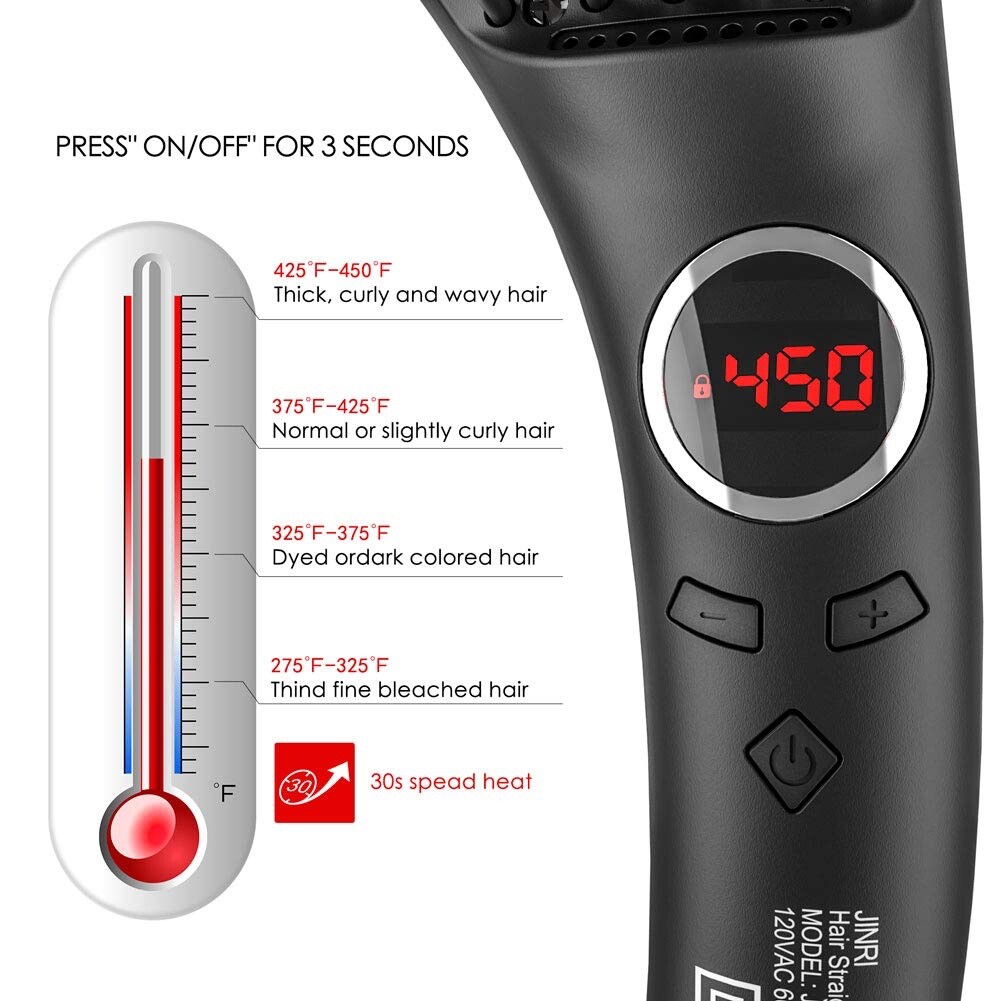 Brand New -- Hair Straightener Brush, Ceramic Ionic Straightening Iron Comb
