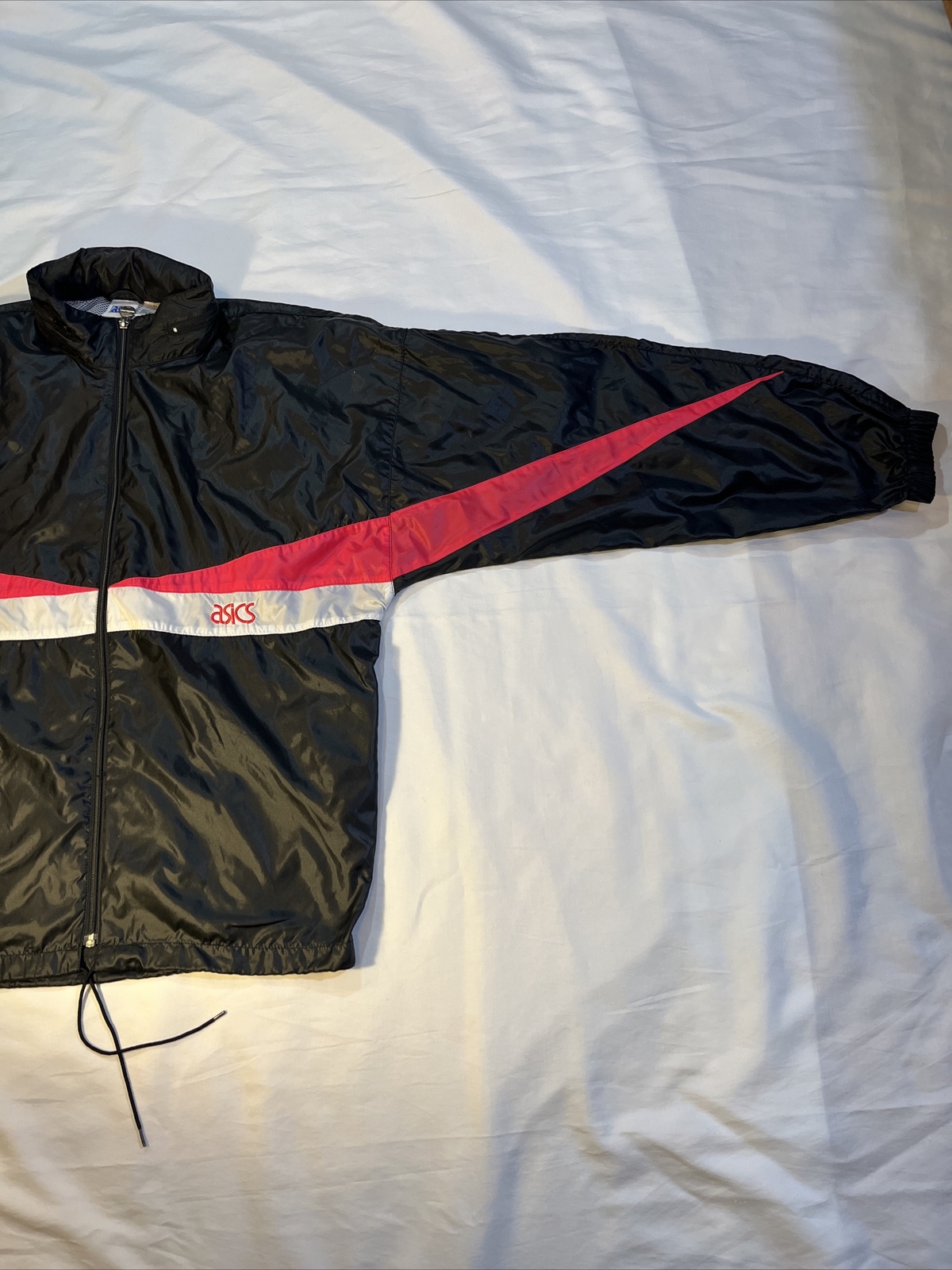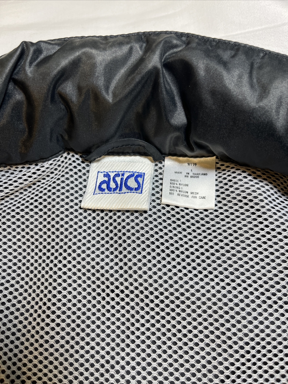 как выглядит Asics Full Zip Hoodie /Pouch Windbreaker Jacket Sz Large Black Colorblock EUC фото