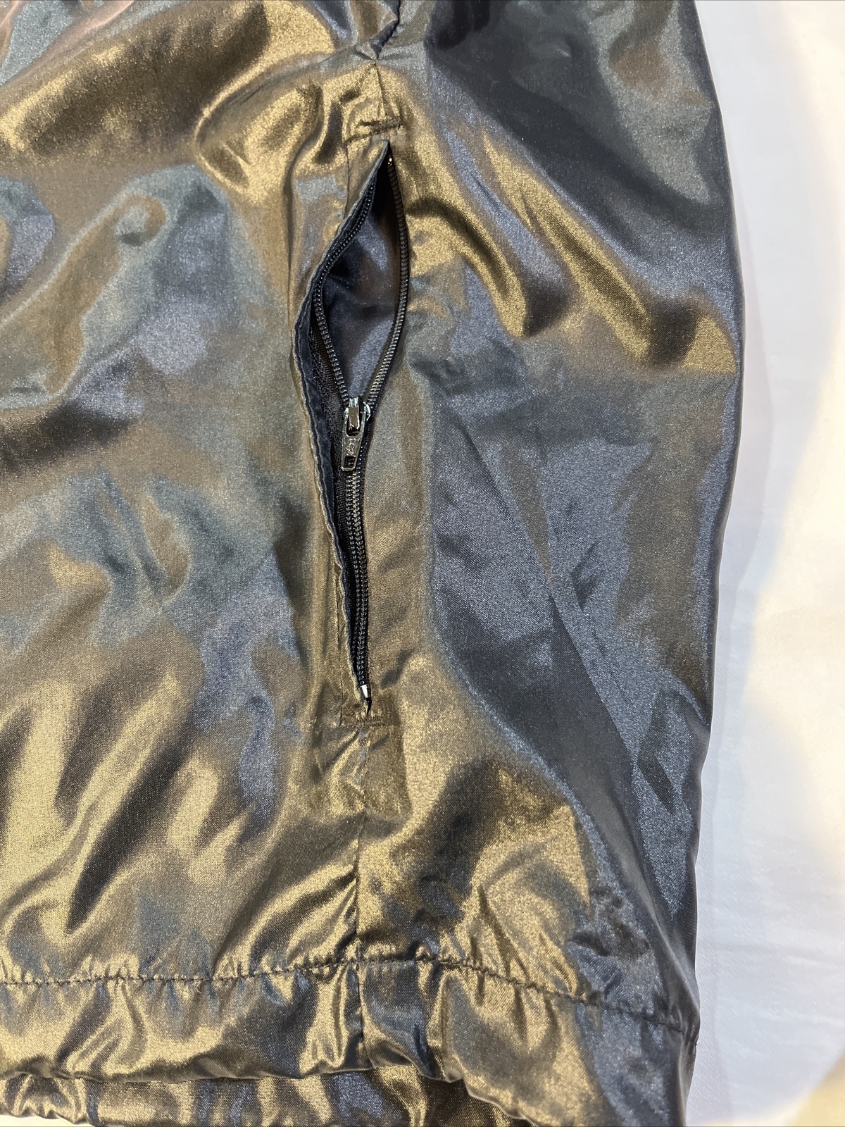 Asics Full Zip Hoodie /Pouch Windbreaker Jacket Sz Large Black Colorblock EUC