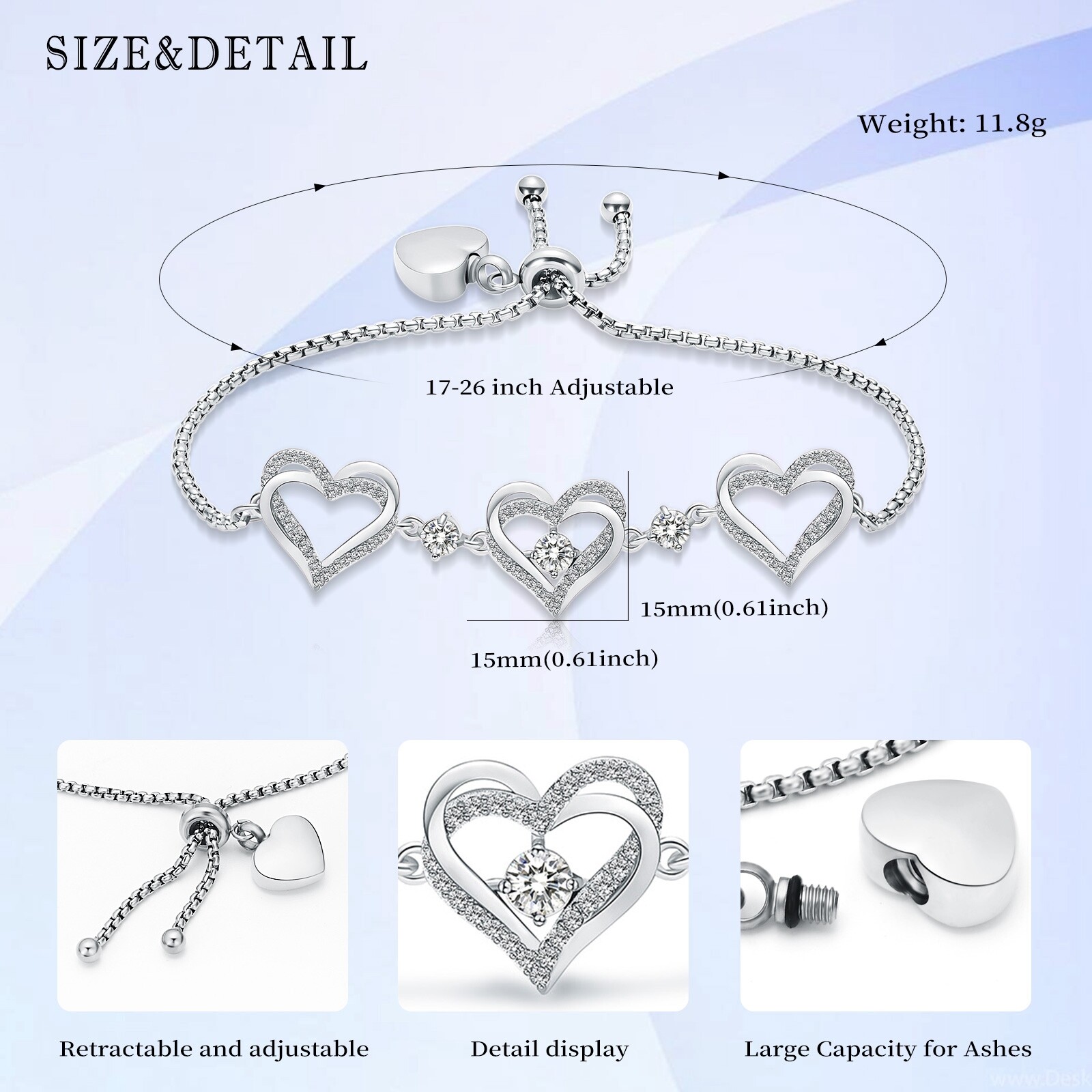 Heart Cremation Bracelet for Ashes - Stainless Steel Urn Bangles for Pet/Human