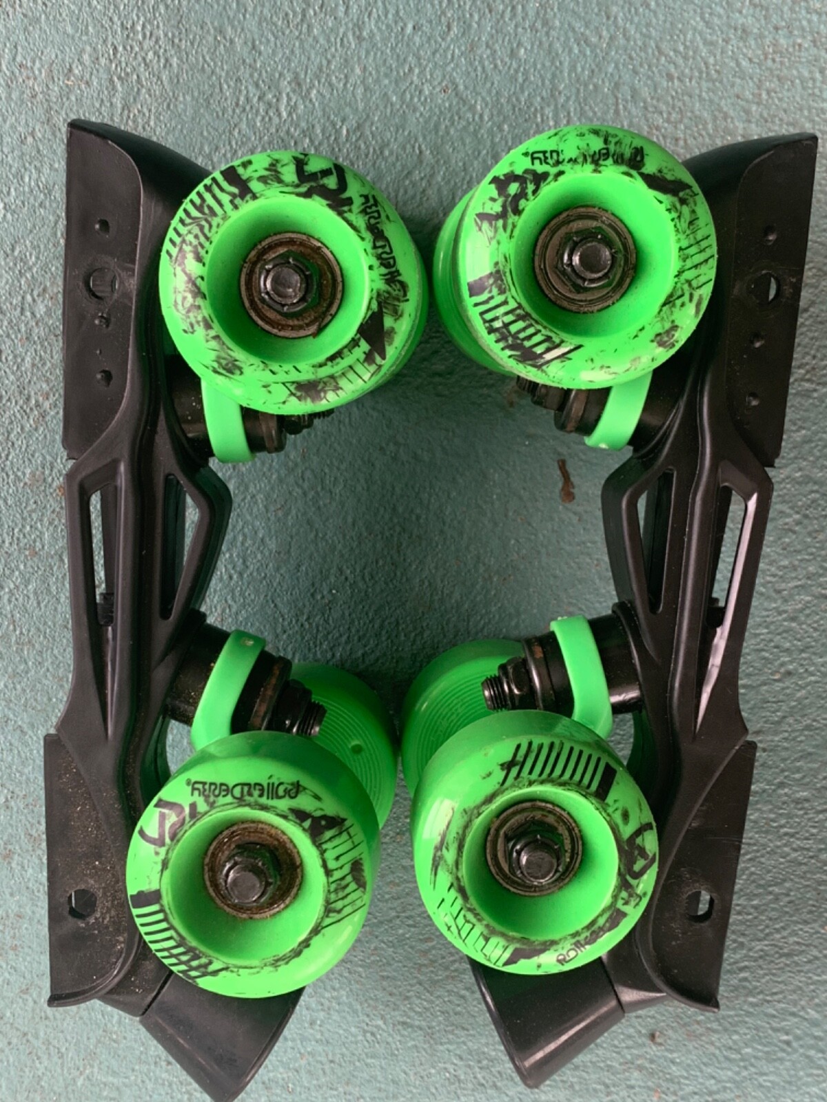 2 Roller Derby Red Black Skate Wheels Truck Plate Replacement Red Green