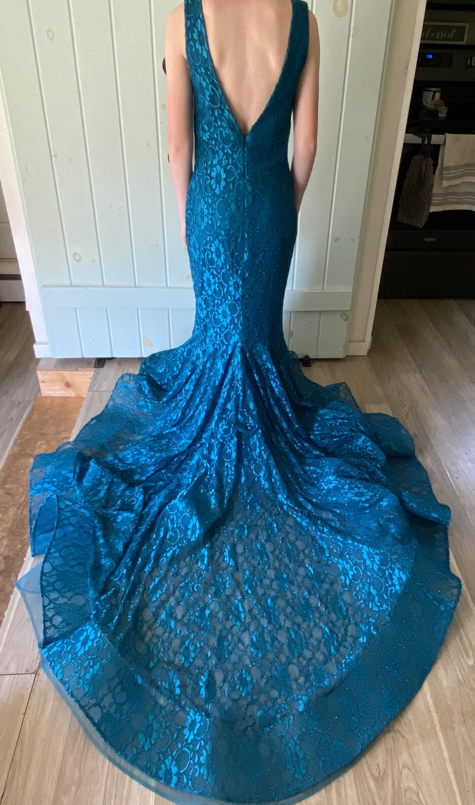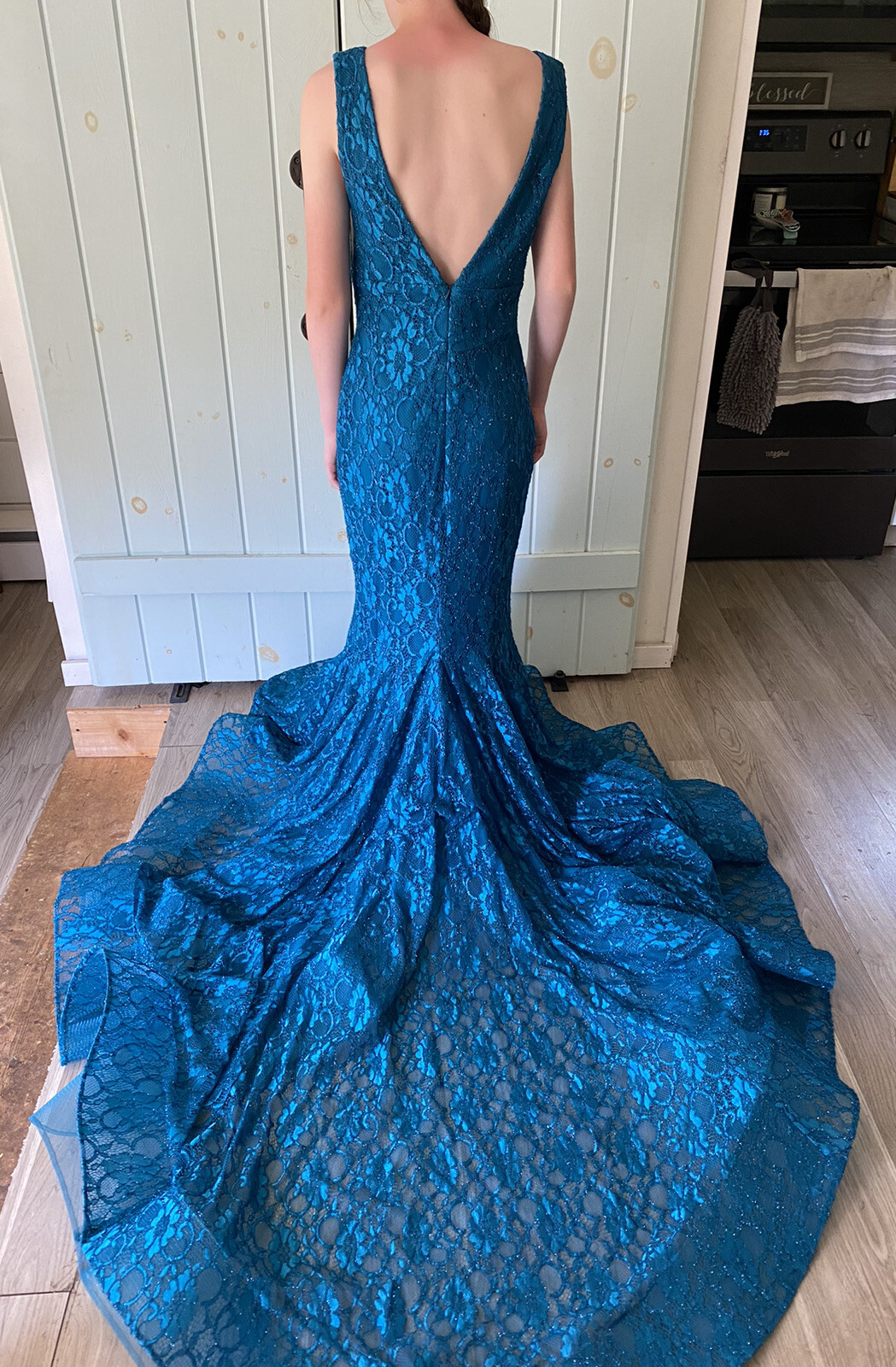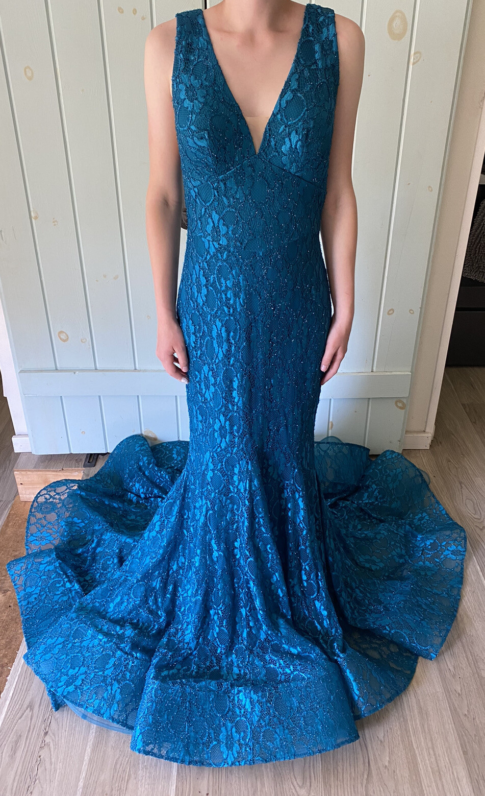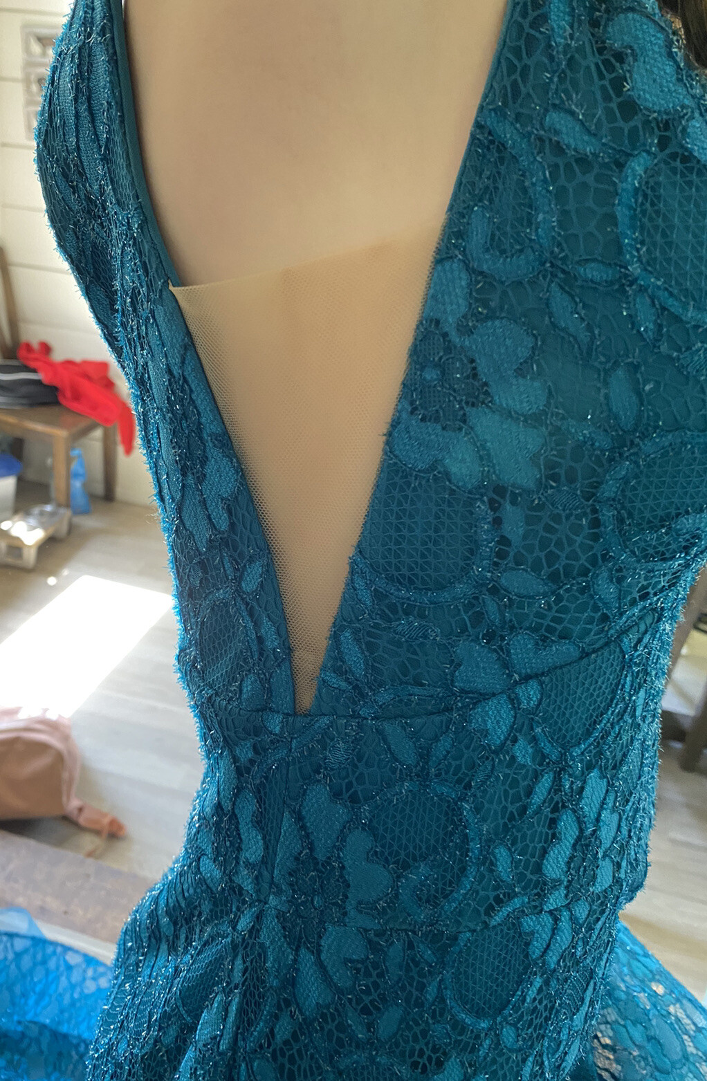 как выглядит Tarik Ediz - 93620 Sleeveless V Neck Mermaid Gown - Turquoise - Size 2 фото