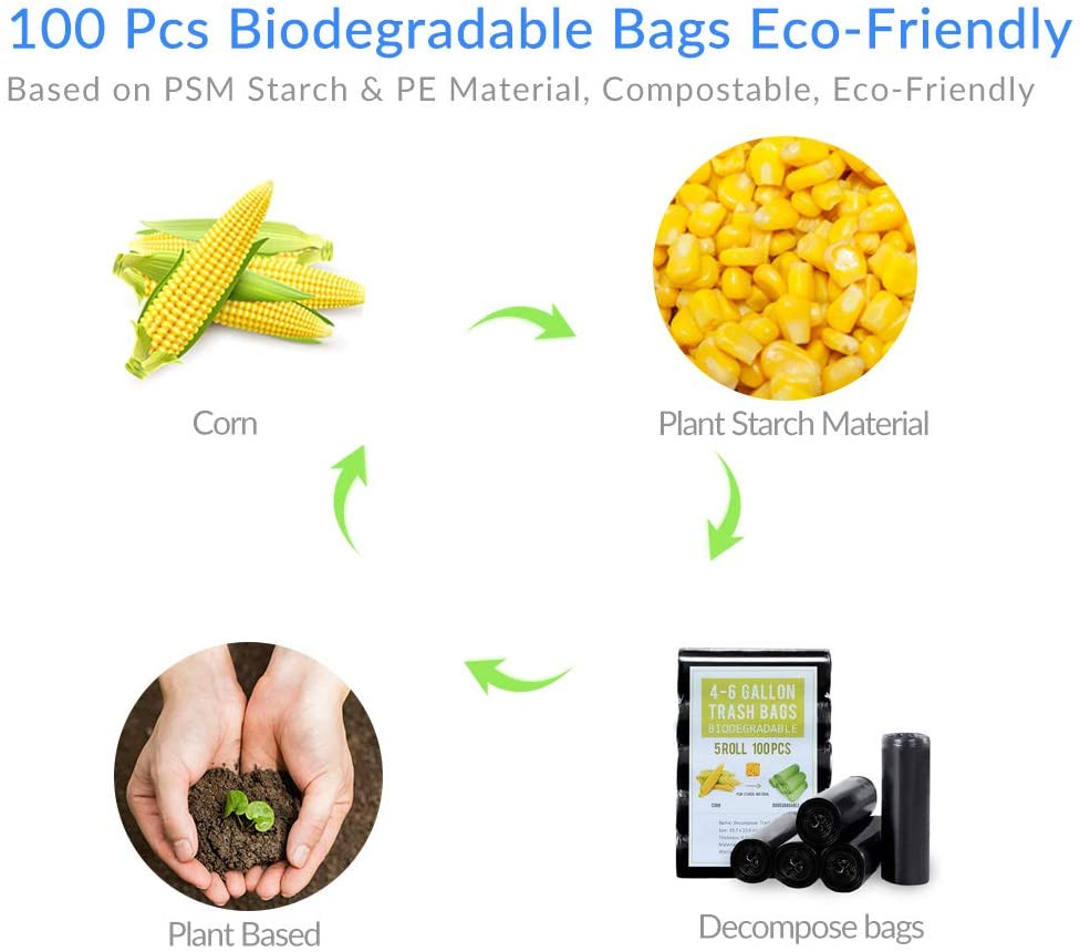 Garbage Bags 4 - 6 Gallon Black Biodegradable Strong Trash Bag Bathroom Kitchen
