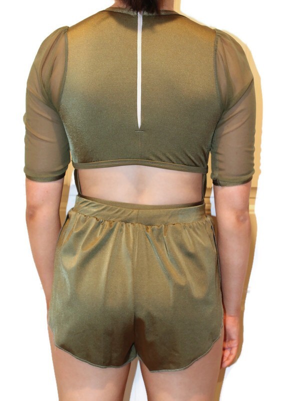 Dance Competition Costume Olive Green Leotard short Mesh Lyrical Contemporary XS