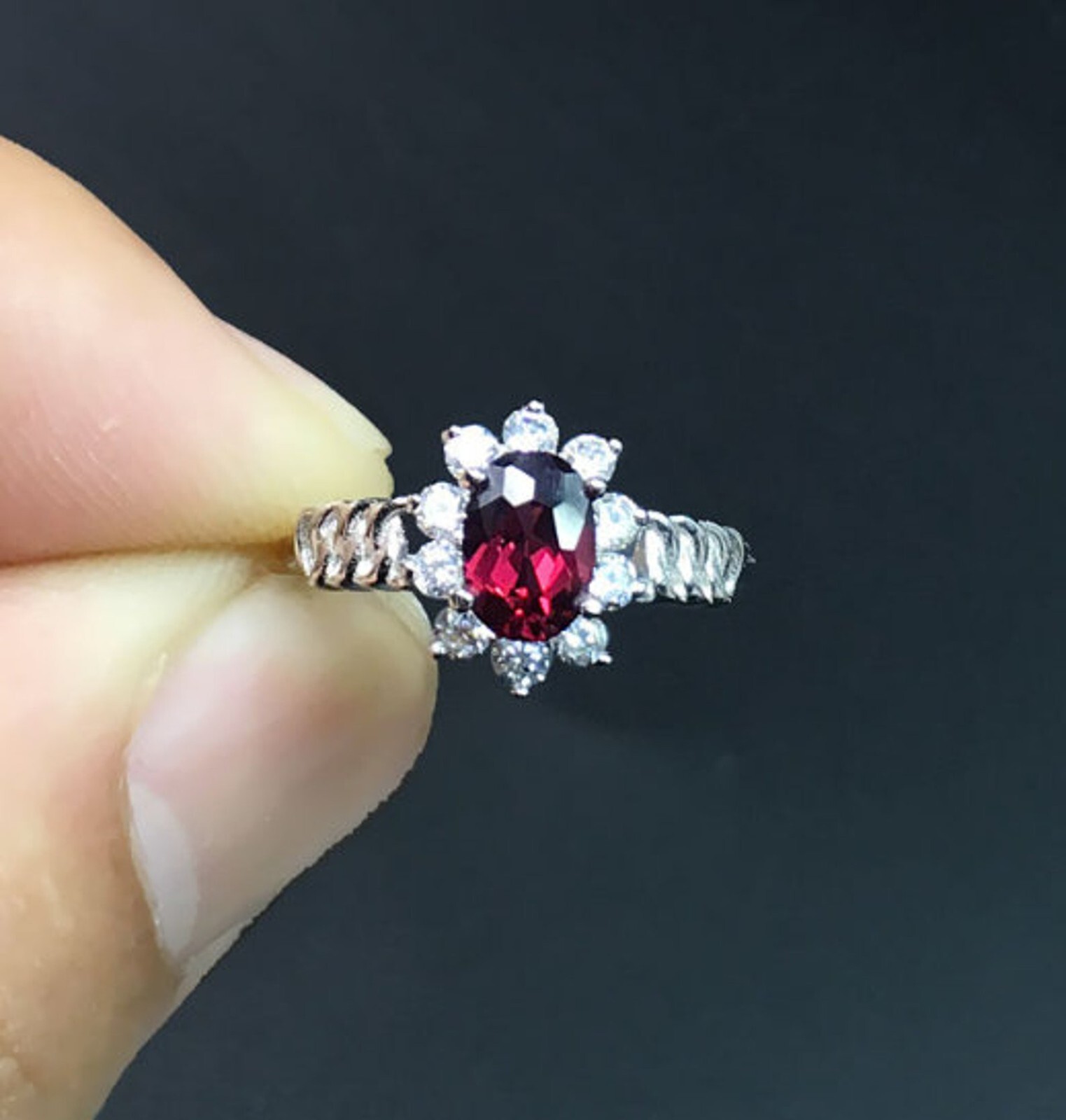 как выглядит Natural Garnet ring 925 Sterling Silver ring engagement ring Oval cut ring. фото