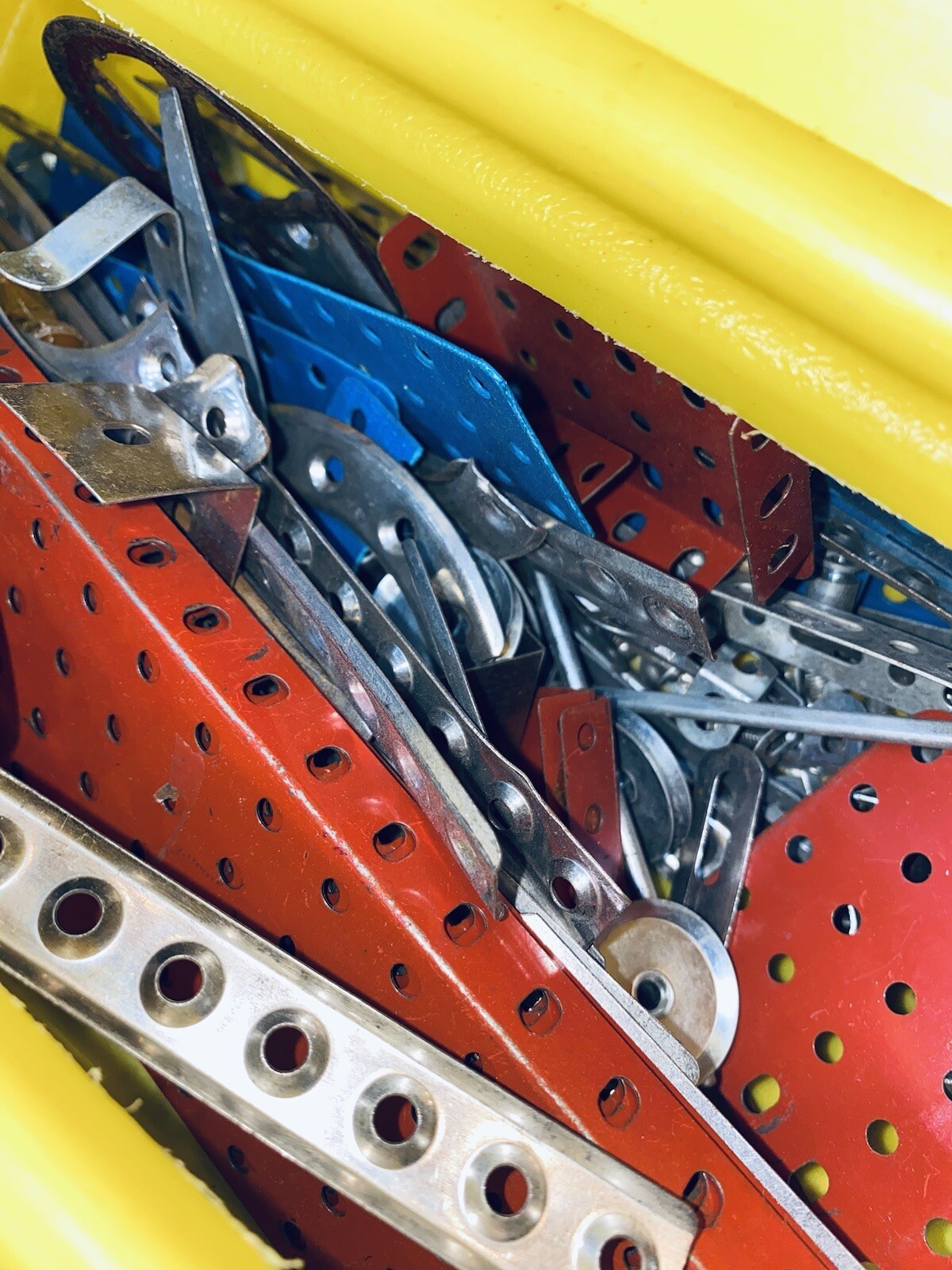 Vintage 1970's Gabriel Erector Set in Yellow Plastic Case Children s Building