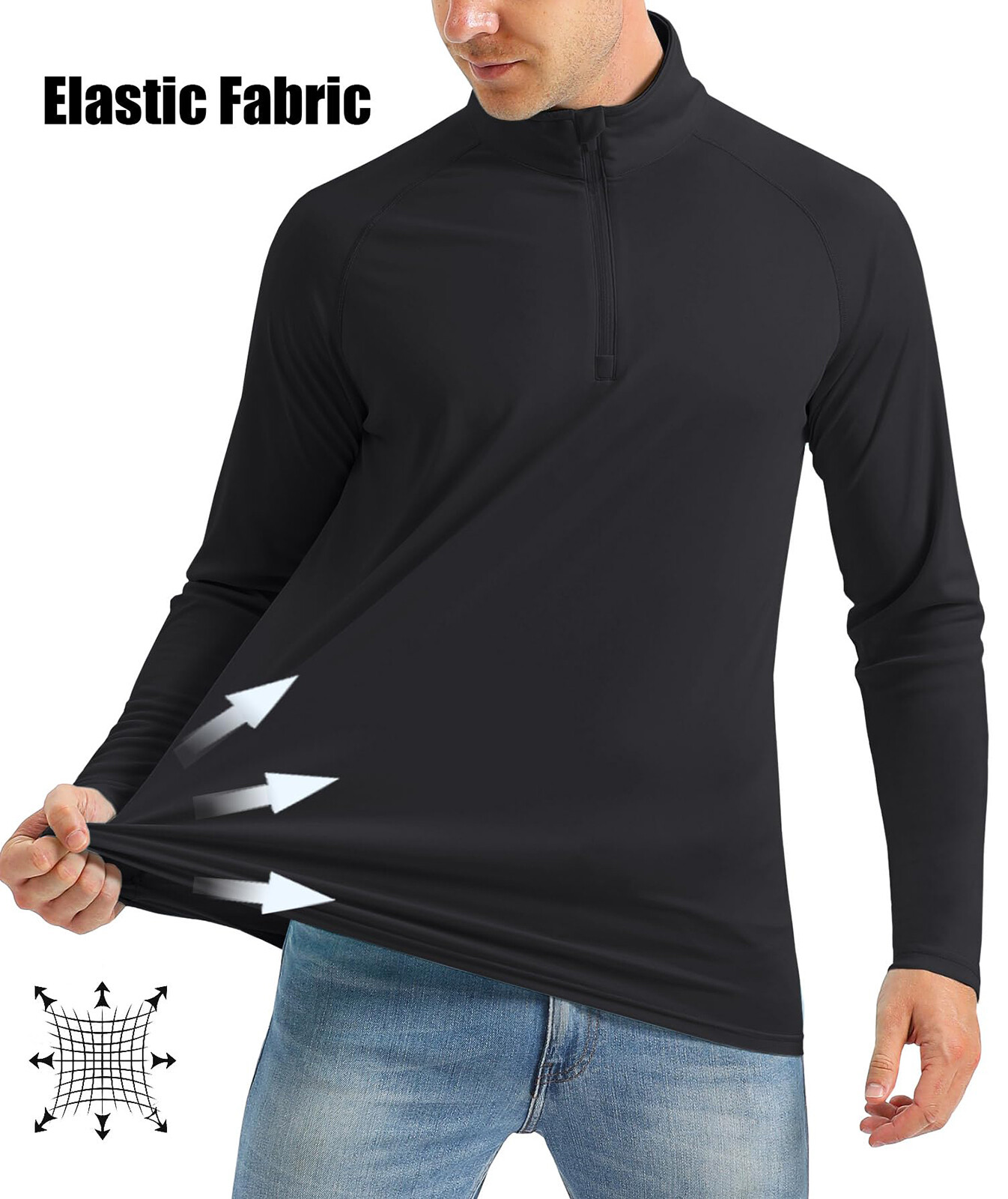 UPF50 Long Sleeve 1/4 Zip Men's T-Shirts Sun Block UV Shirts Quick Drying Tops