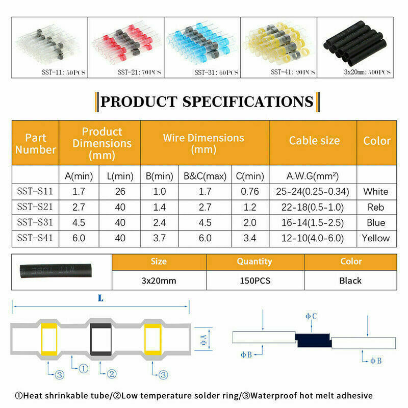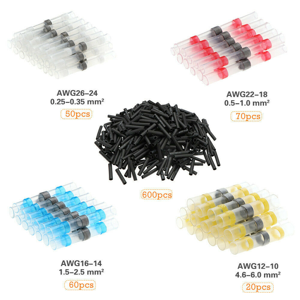 800PCS Waterproof Solder Seal Heat Shrink Wire Butt Terminal Connectors Kit Set