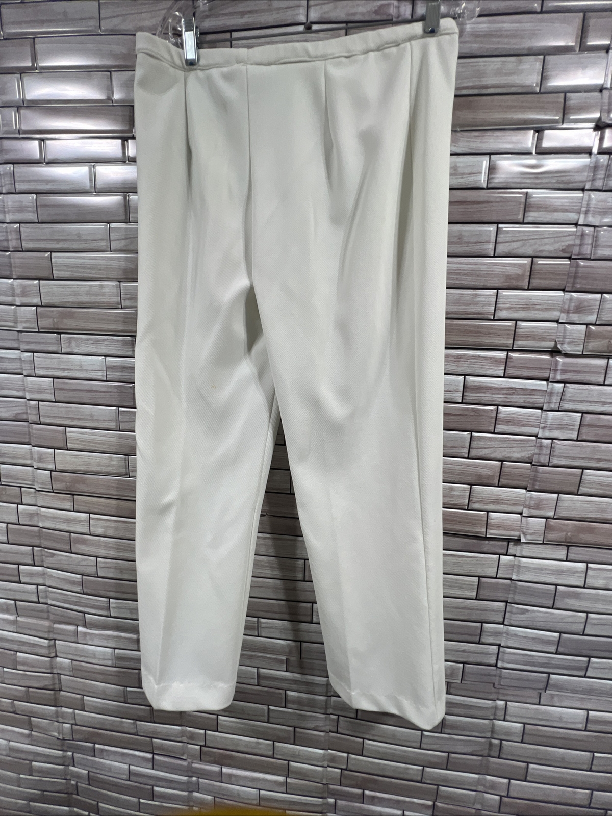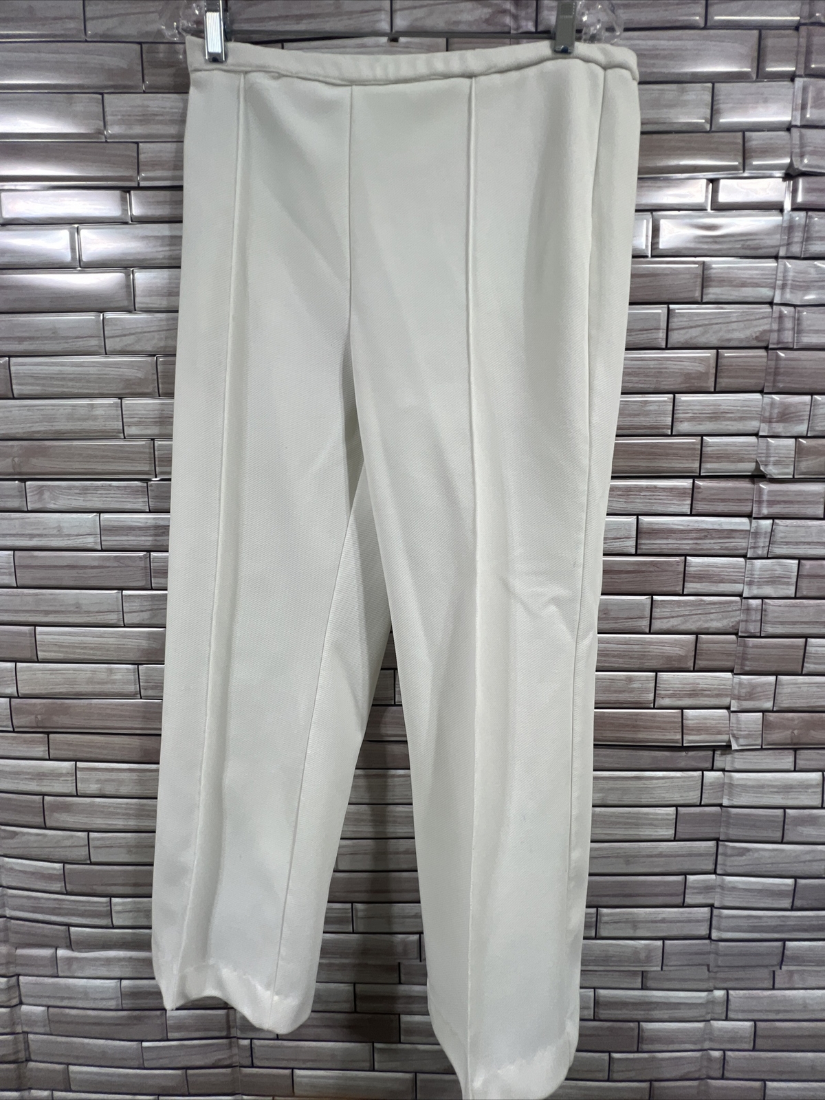 womens high waisted L white vintage polester pant pull on textured dress slacks