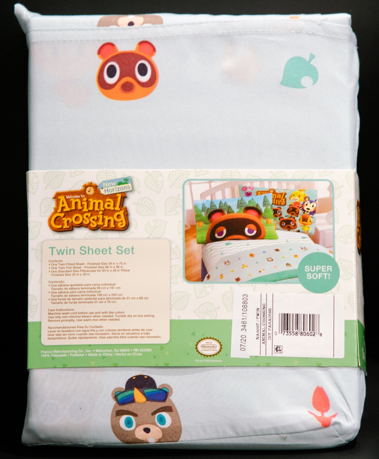 Animal Crossing New Horizons - 3 Piece Twin Sheet Set w/ Pillow Cases New