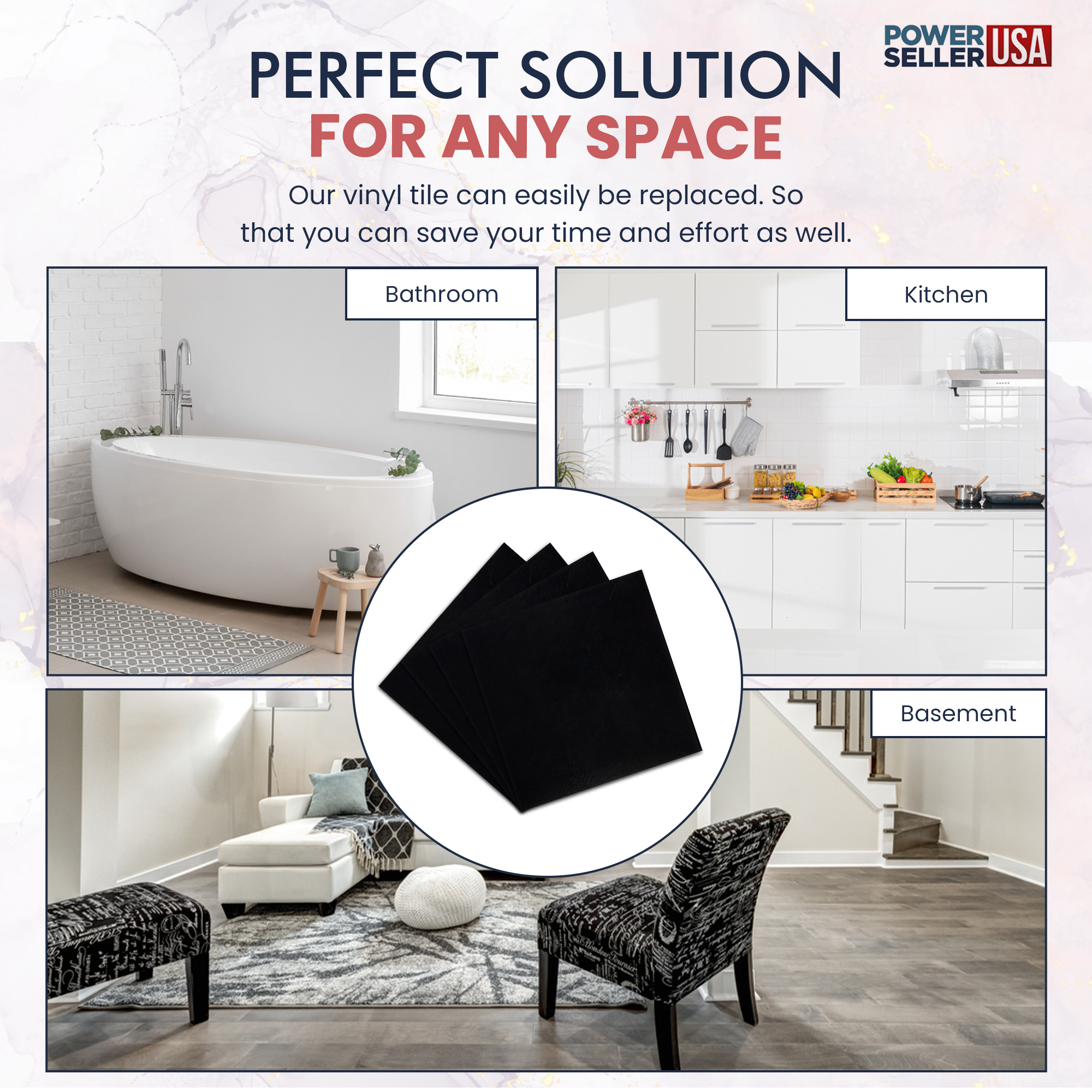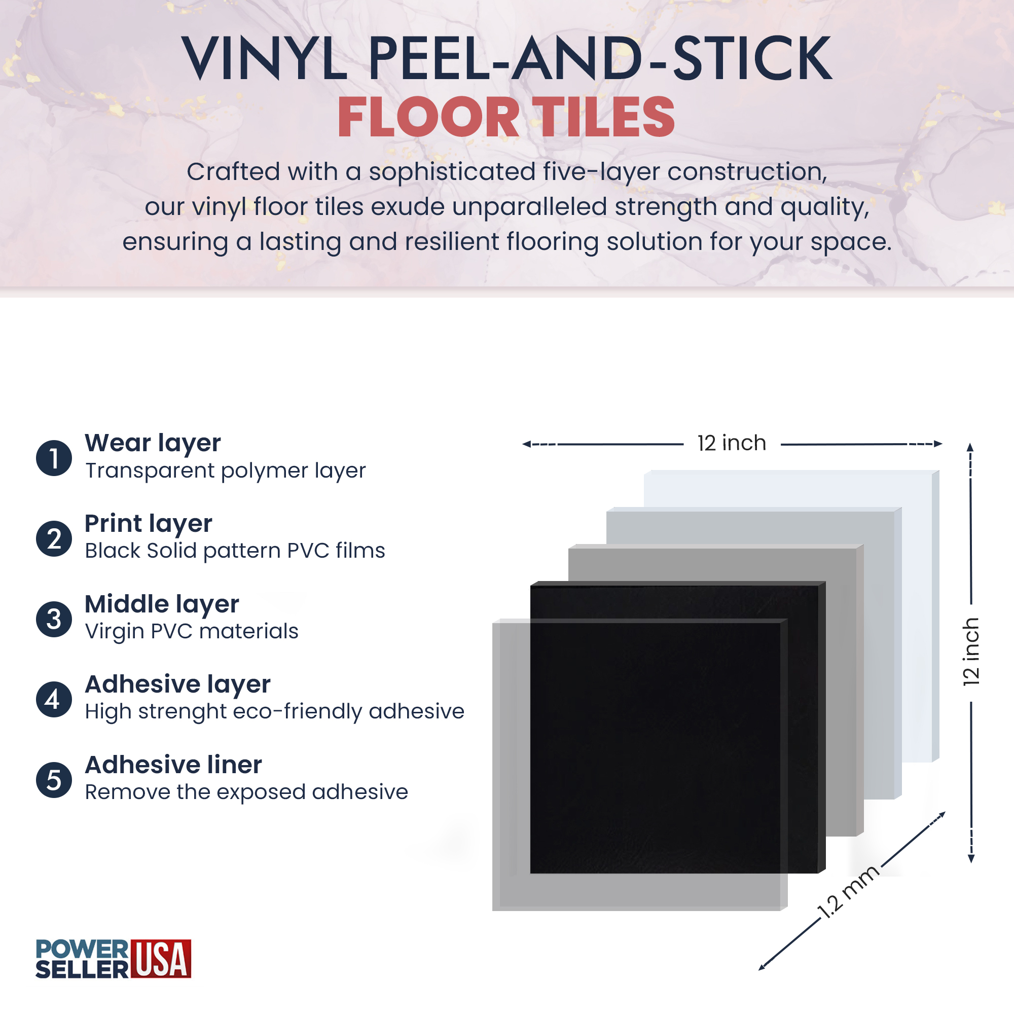 PowerSellerUSA 12x12 Self-Adhesive 1.2mm Thick Peel Stick Vinyl Floor Tiles