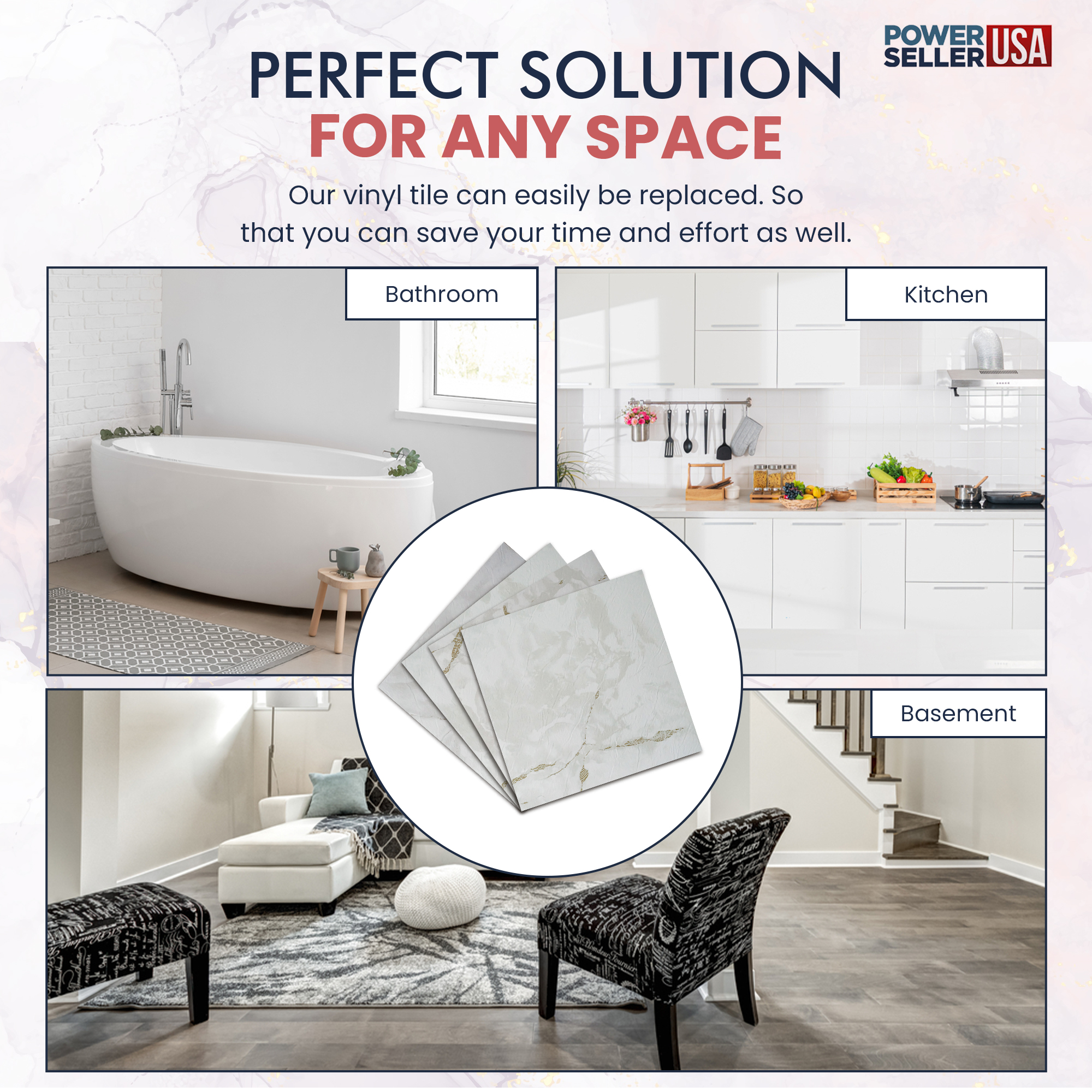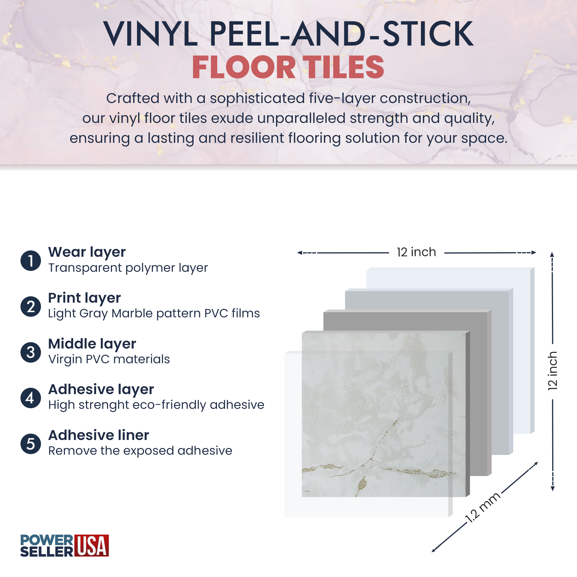 PowerSellerUSA 12x12 Self-Adhesive 1.2mm Thick Peel Stick Vinyl Floor Tiles