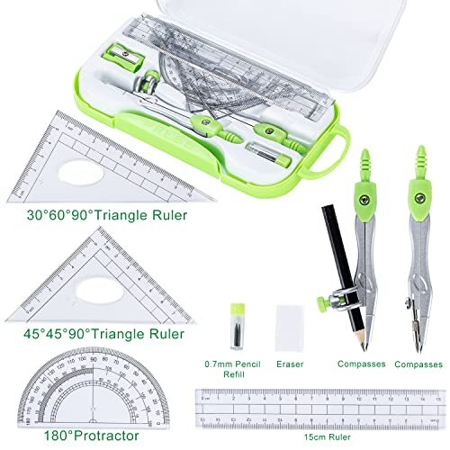 Item Height: Geometry Kit 10 Pcs Math Compass Rulers and Protractor