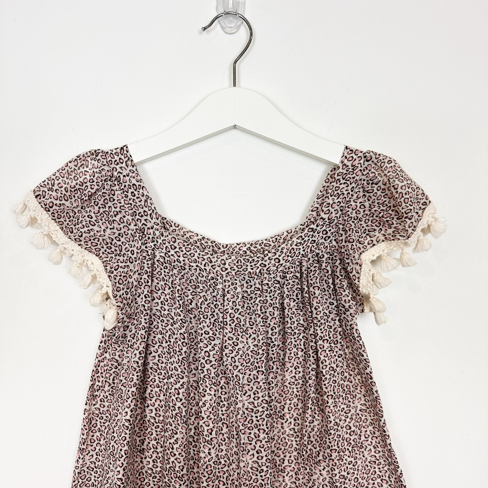 eberjey Girls Dress Coverup Brown Animal Print Fringe Sz 8 100 Cotton