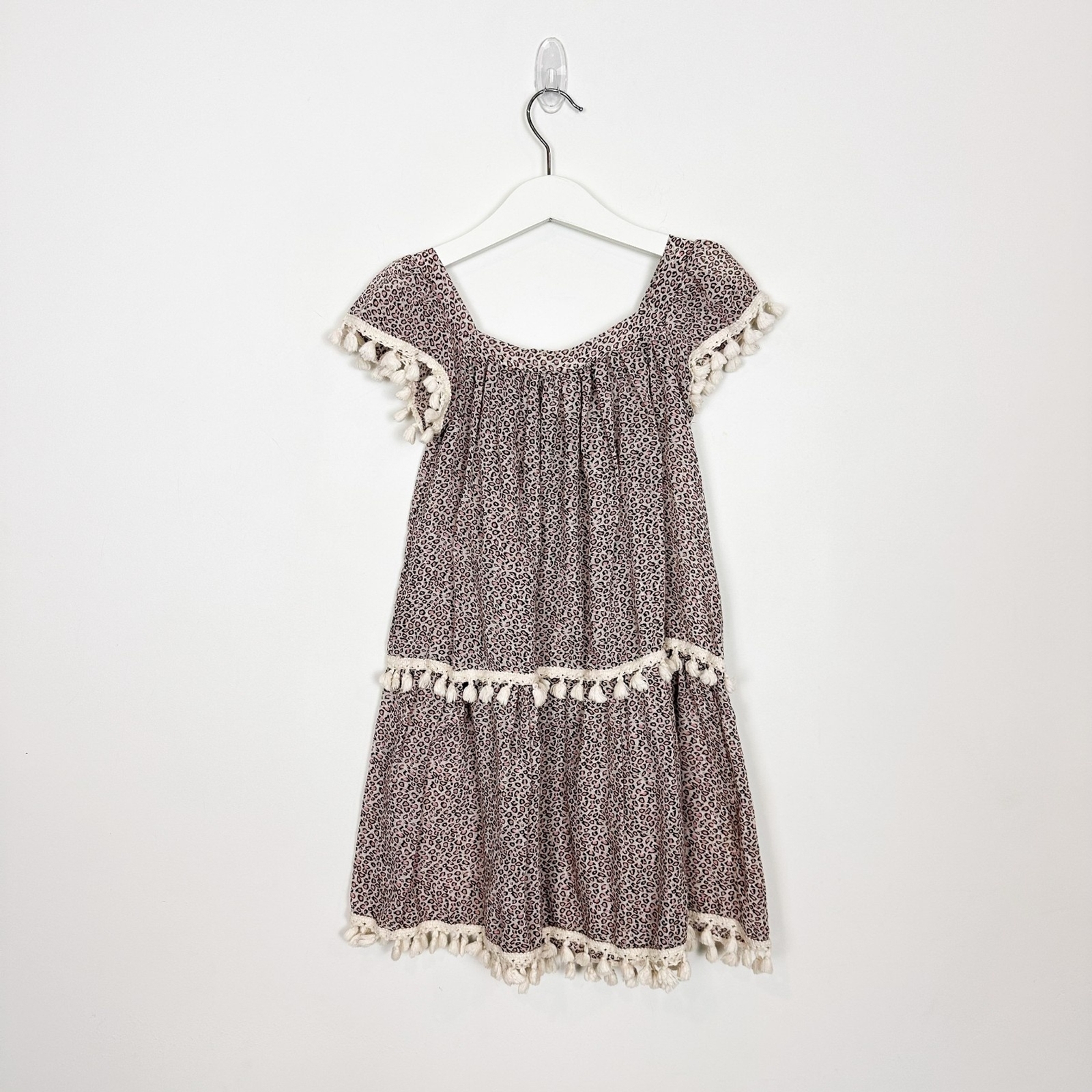 как выглядит eberjey Girls Dress Coverup Brown Animal Print Fringe Sz 8 100 Cotton фото