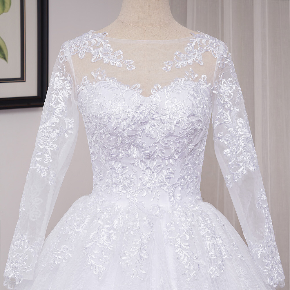 как выглядит Luxury Ball Wedding Dresses Long Sleeves Lace Applique A-line Bridal Gowns фото