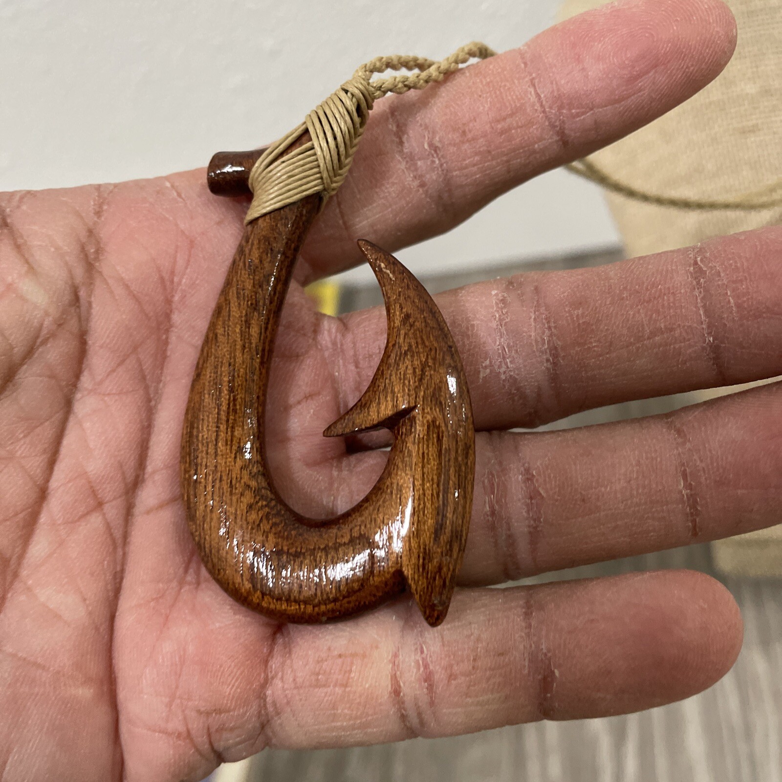 • Genuine Koa Wood Hawaiian Jewelry Fish Hook Pendant Choker/Necklace Adjustable