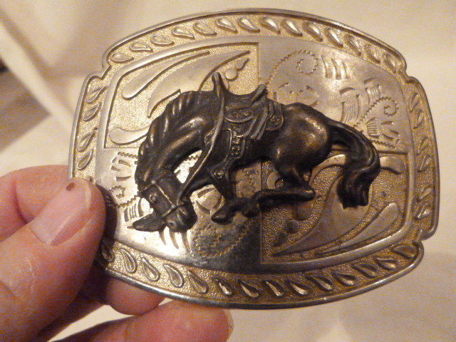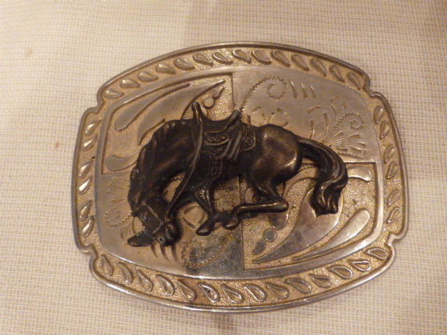 • VINTAGE Silverplate Bucking Bronco Horse Belt Buckle 4"x3"