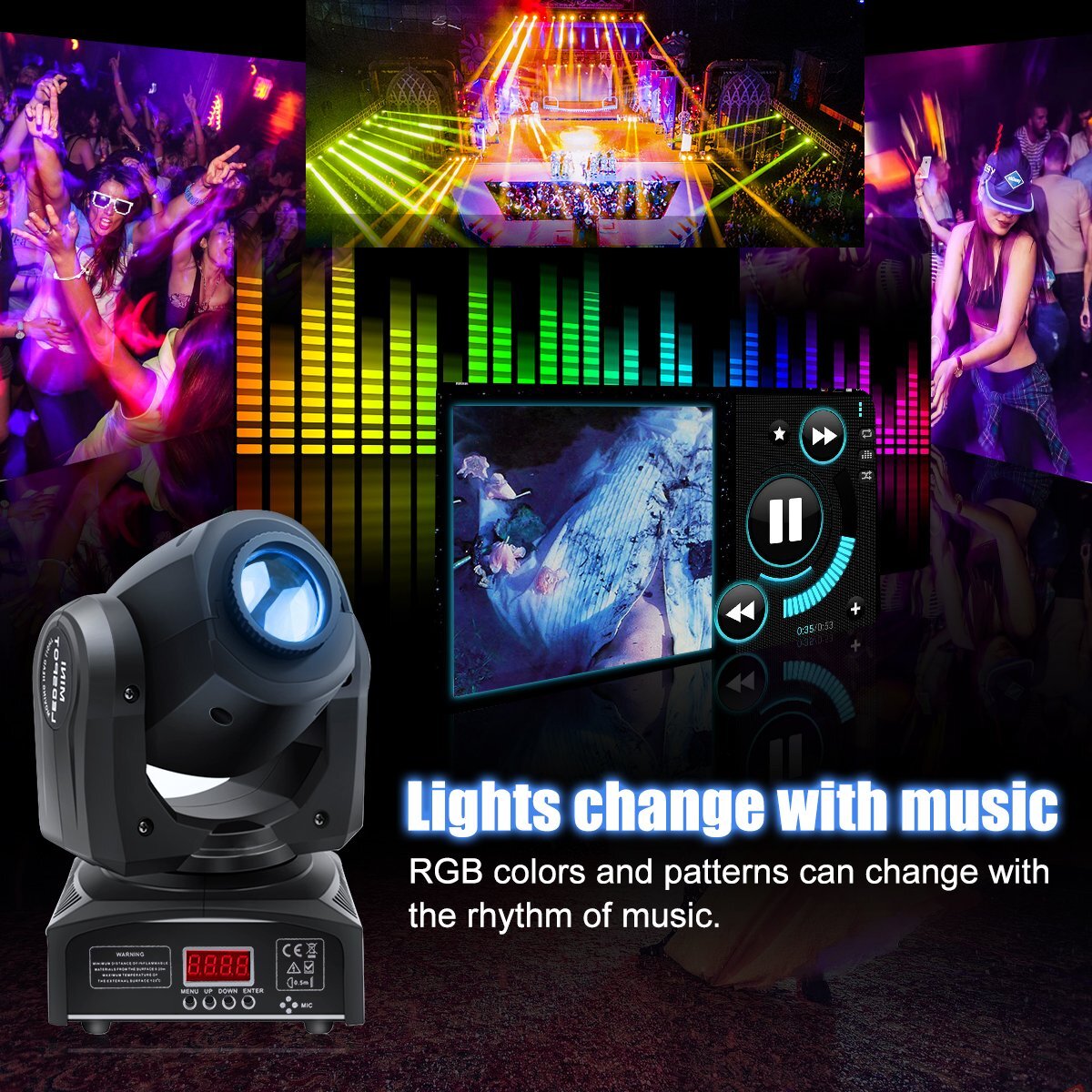 Sports mode: Automatic operation, voice, DMX512, master slaver