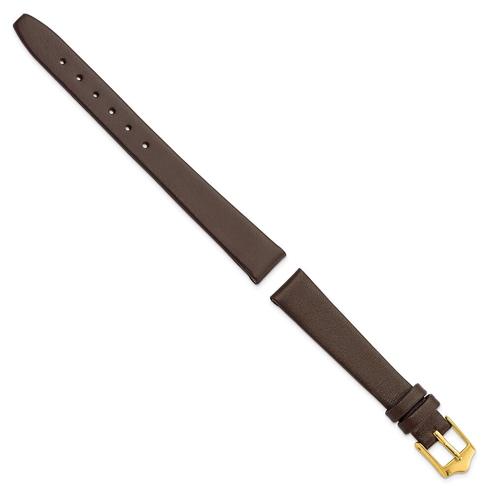 12mm 6.75 Flat Brown Leather Gold-tone Buckle Watch Band