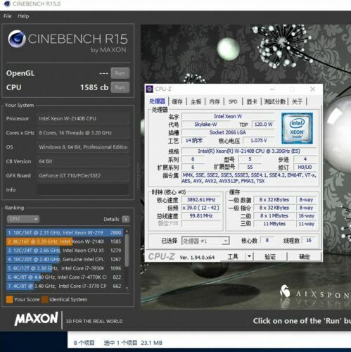 Intel Xeon w-2140b QS CPU processor 3.20 GHz 8-Core sr3lk lga-2066 c422 server