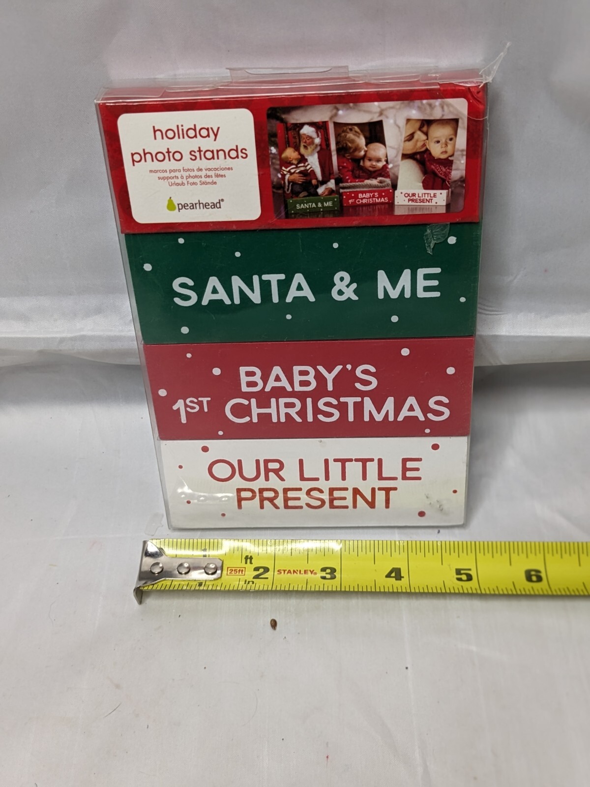 Pearhead Baby Wooden Holiday Christmas Photo Frame Stands