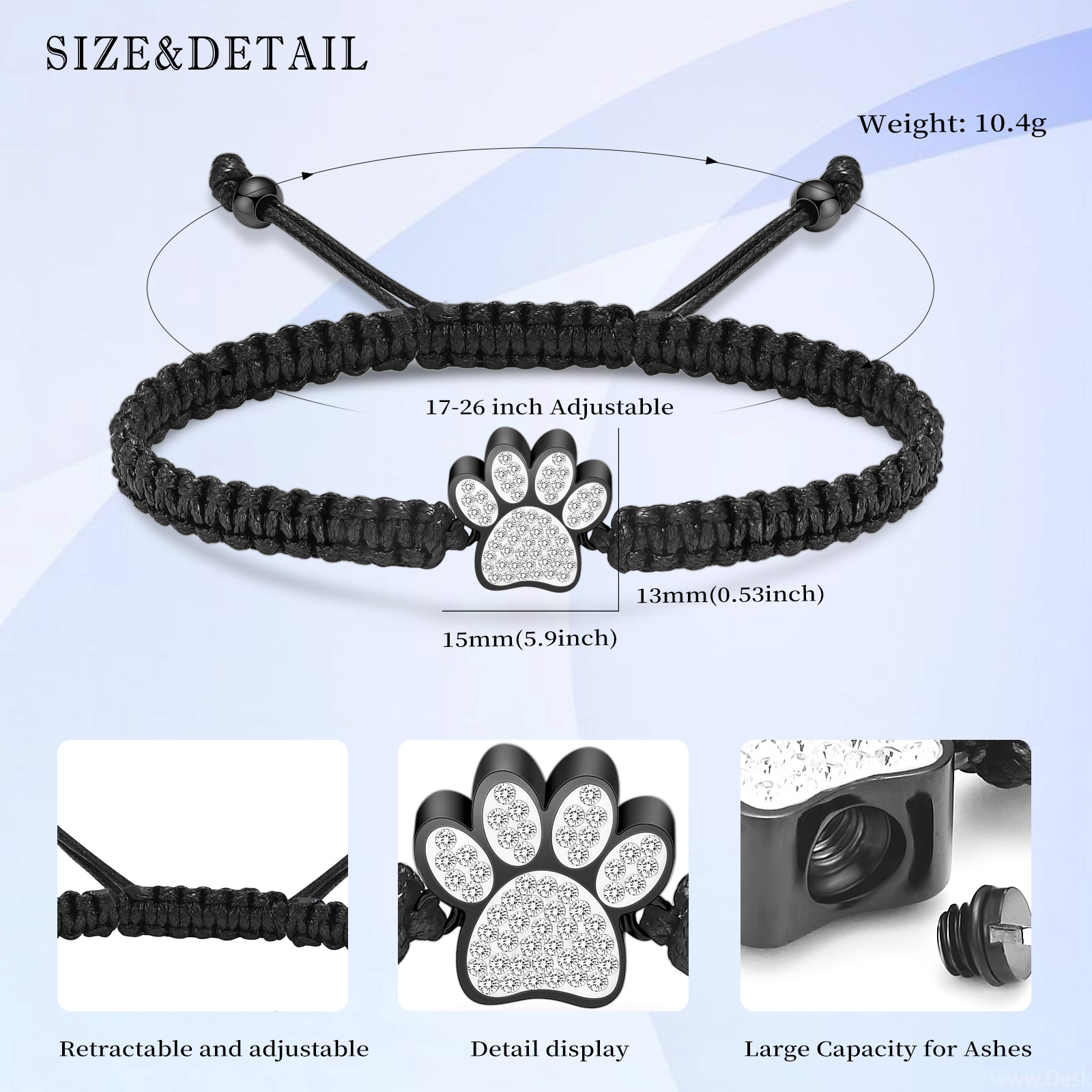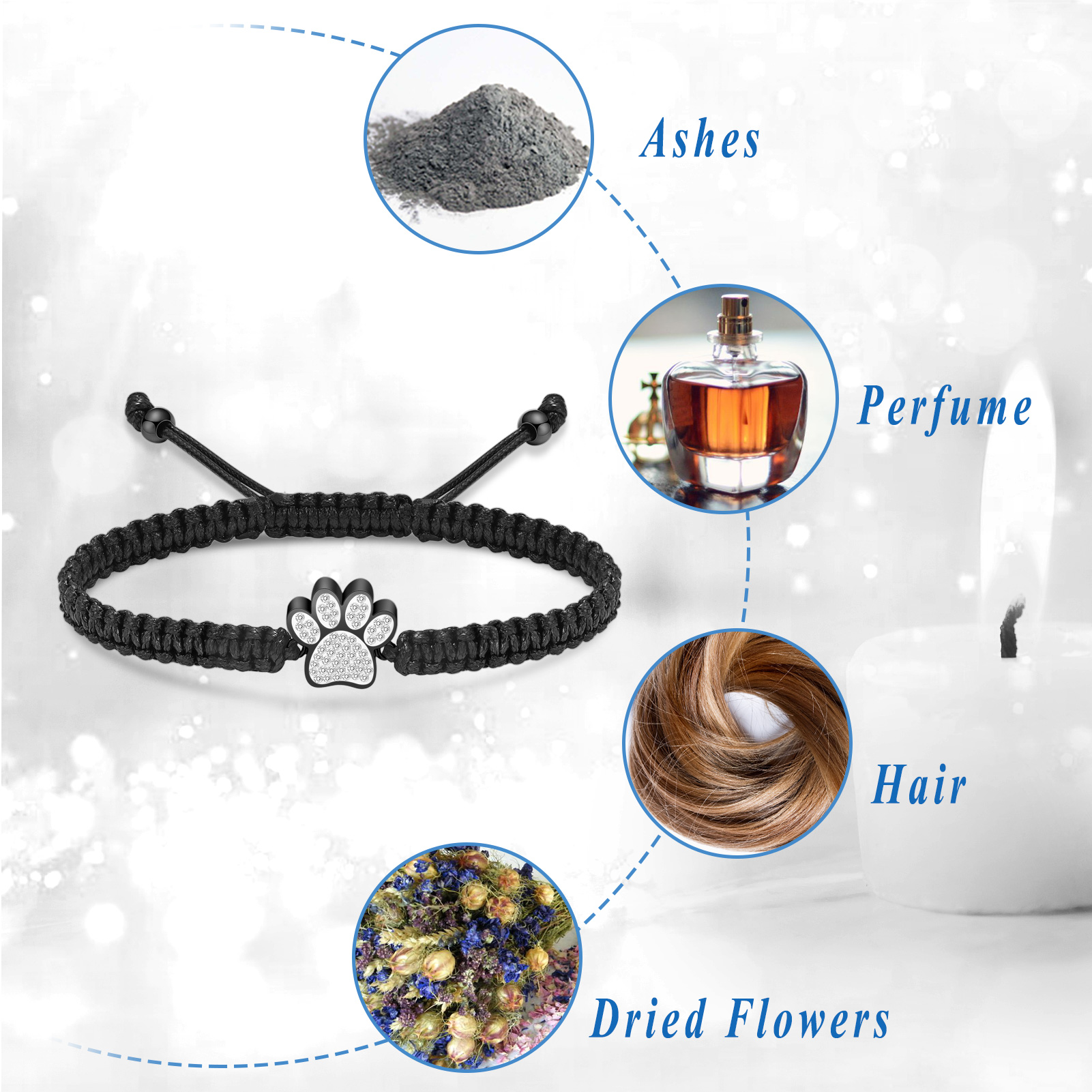Cremation Bracelet for Pets Ashes - Dog Paw Pendant Bangle Memorial Urn Jewelry