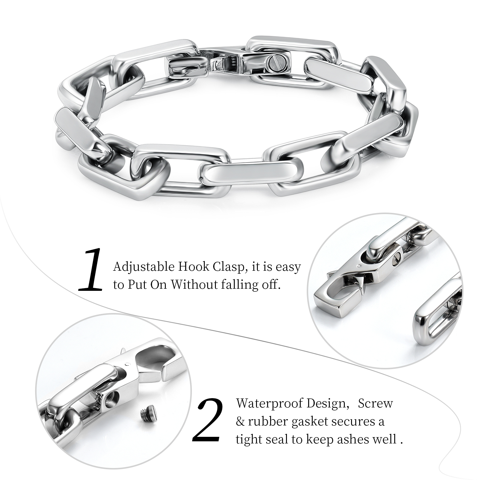 Cremation Urn Bracelet for Ashes Stainless Steel Link Chain Memorial Human Pets
