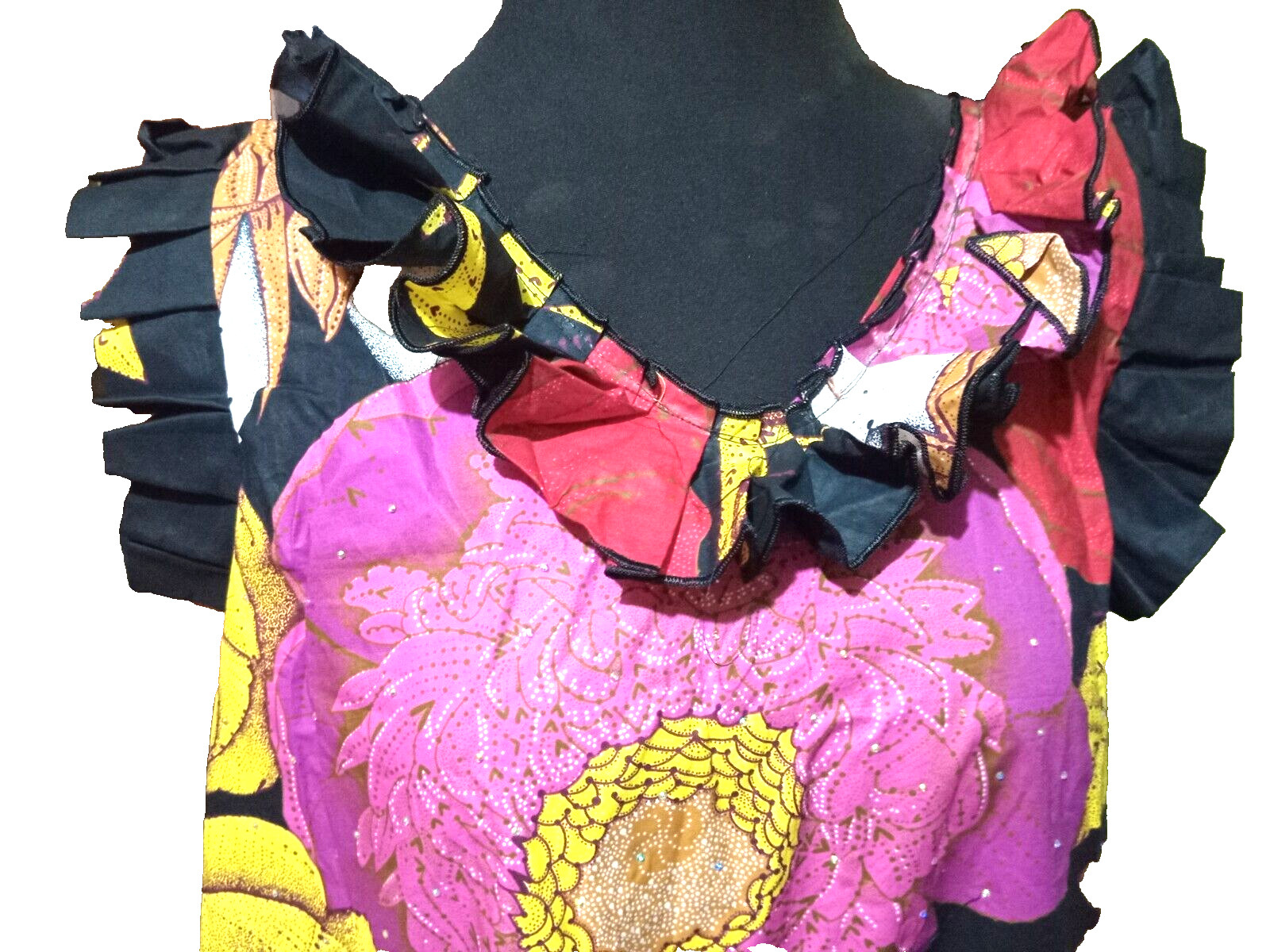Free Size African long dress, B: 48, W: 50, Hips: 60, Full Length: 61 inches.