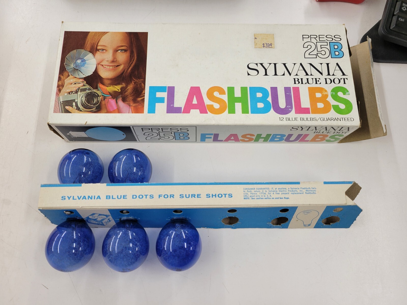 Vintage Sylvania Blue Dot Press 25B Flashbulbs. Pack Of 5 In Original Box