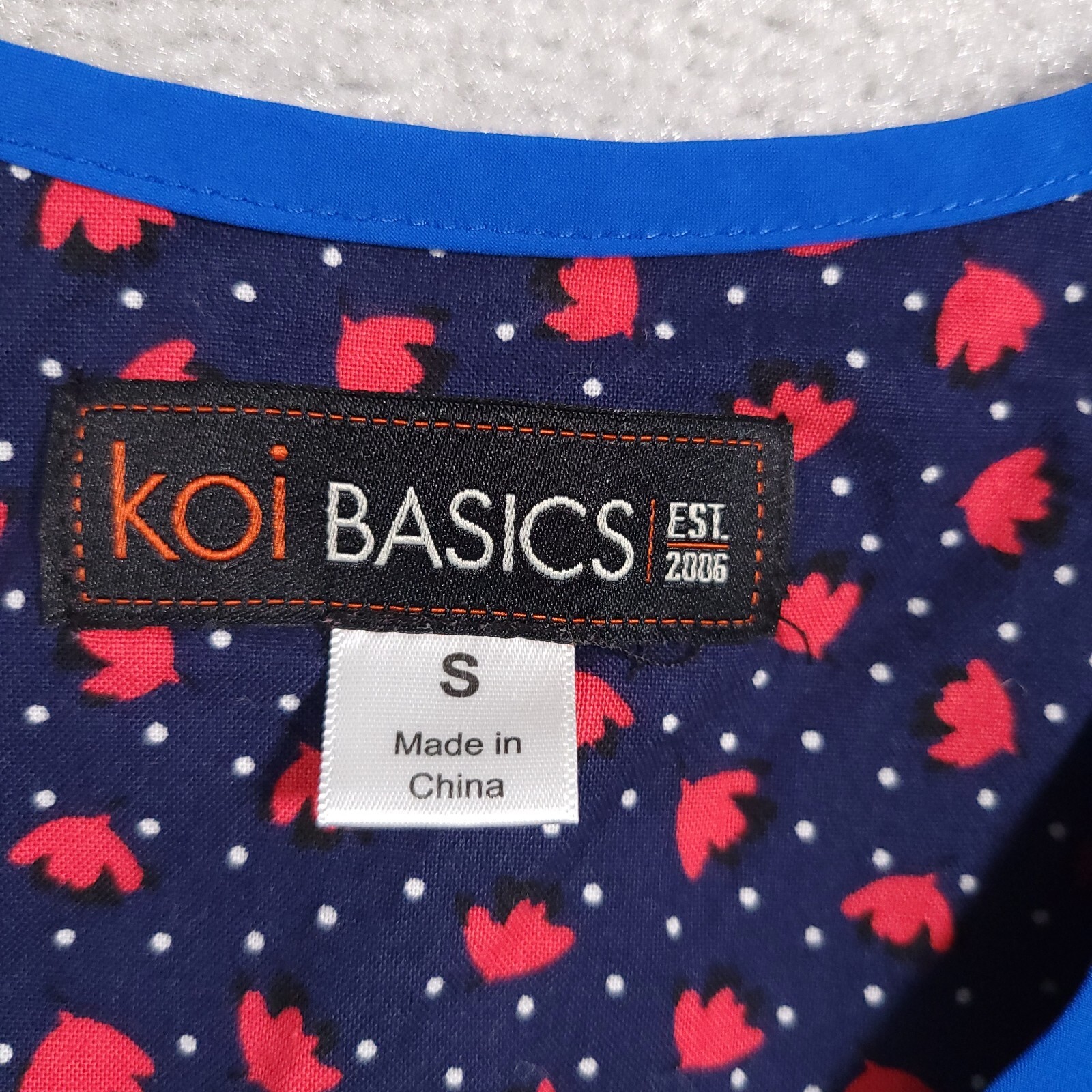 Koi Scrub Shirt T-Shirt Blue Solid V Neck Short Sleeve Medical Pullover Womens S