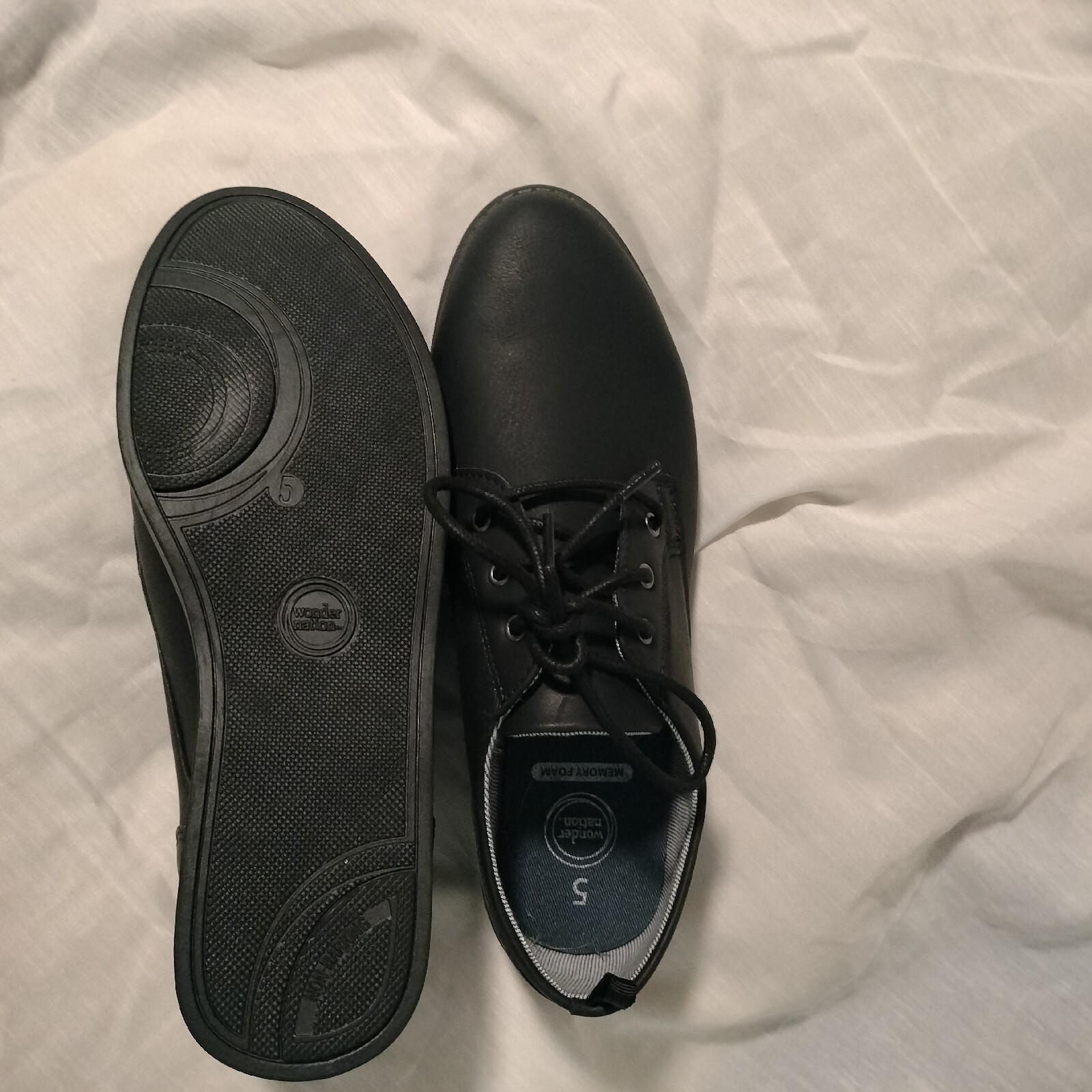 как выглядит Wonder Nation Boys Oxford Dress Shoes-Youth 1-Black Uniform фото