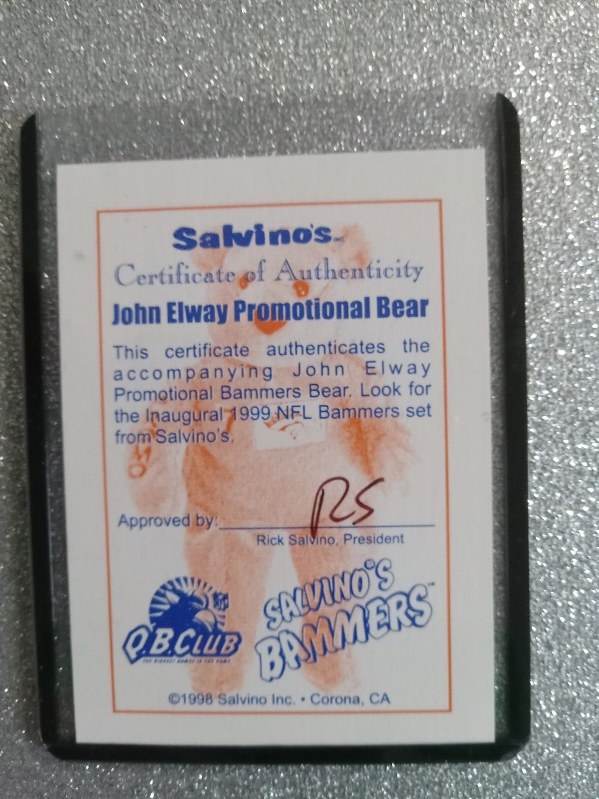 • Denver Broncos John Elway 7 Bear by Salvino's Bammers Promo w/COA