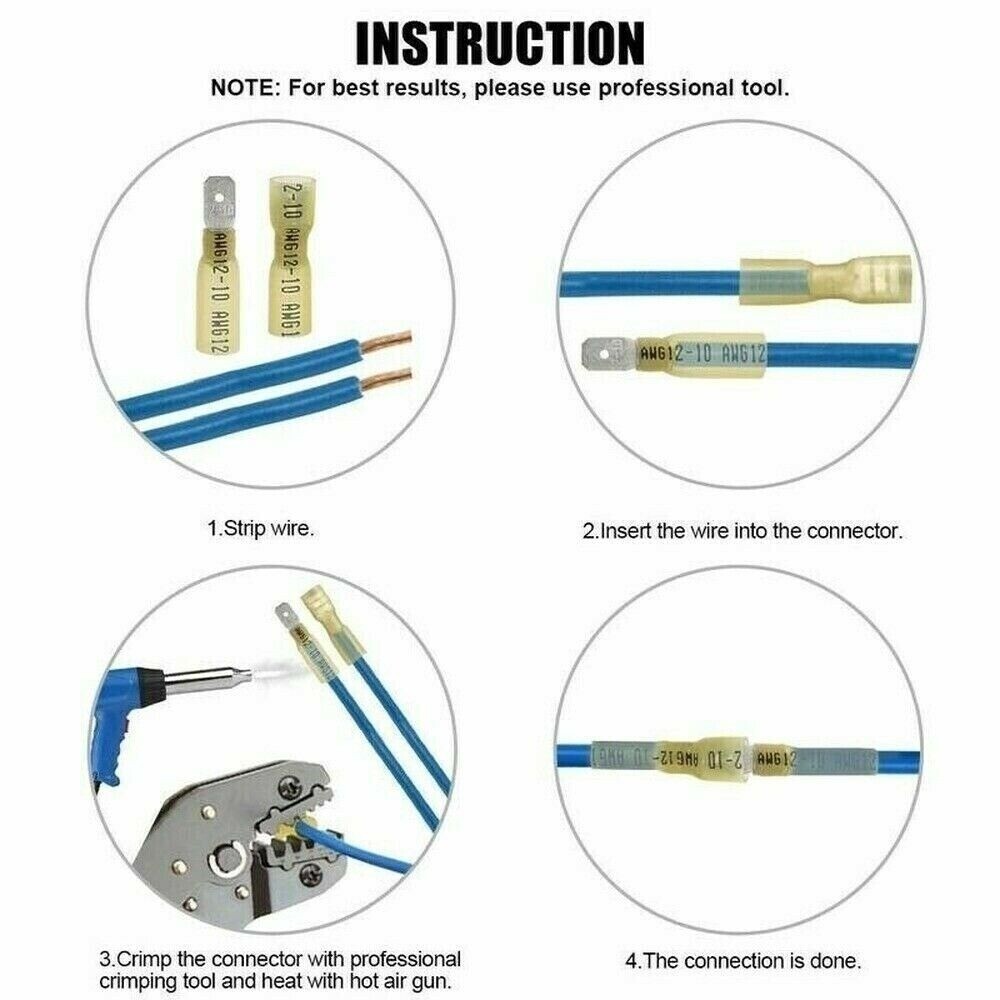 220 PCS Heat Shrink Electrical Wire Terminals Male Female Spade Connectors Kit