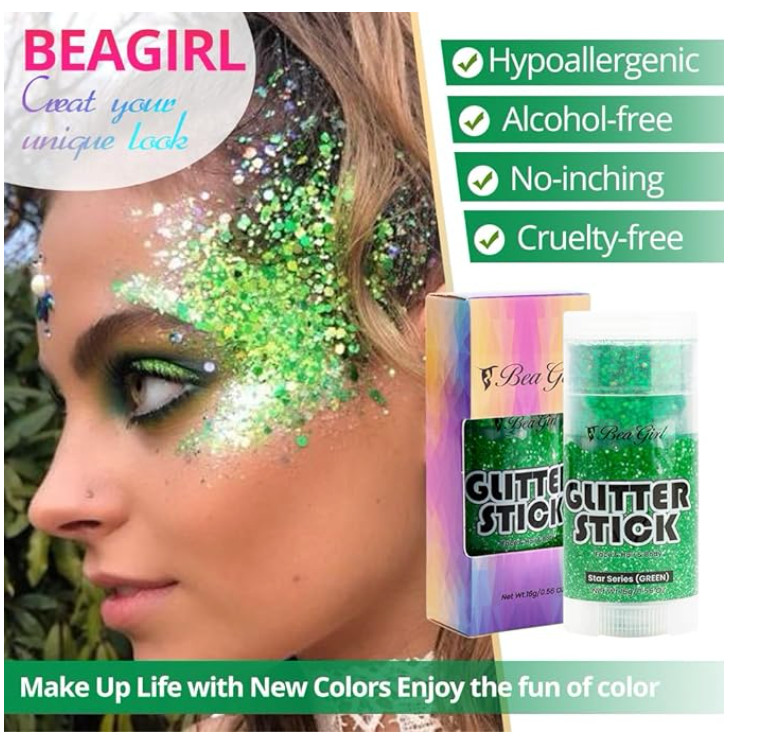 Green Face Glitter Stick,Sparkling Sequins Holographic Makeup Glitter Stick