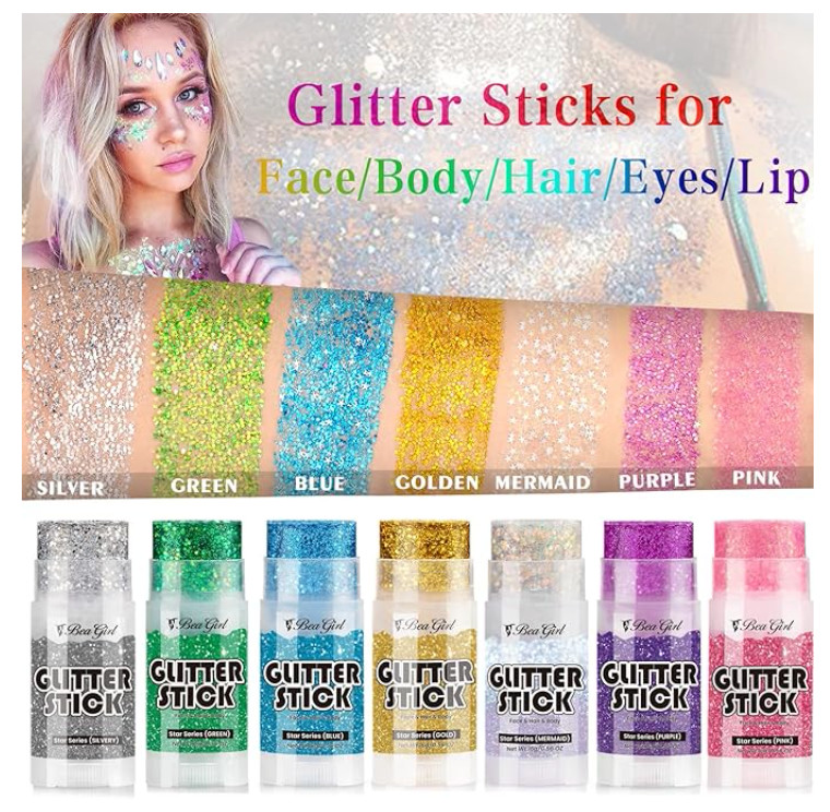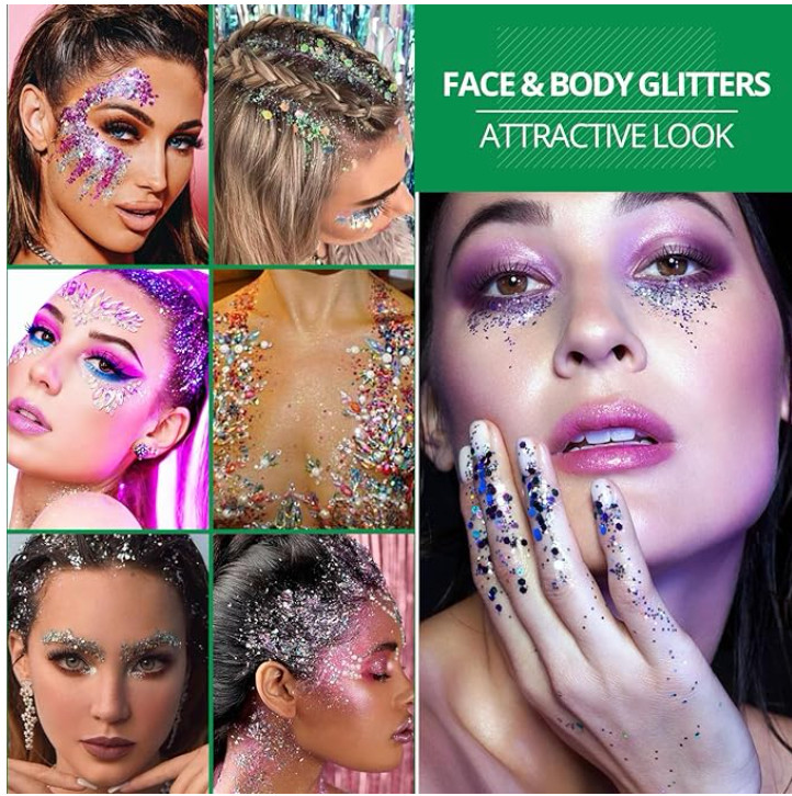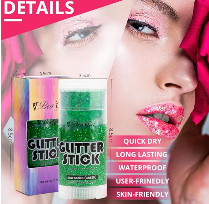 как выглядит Green Face Glitter Stick,Sparkling Sequins Holographic Makeup Glitter Stick фото