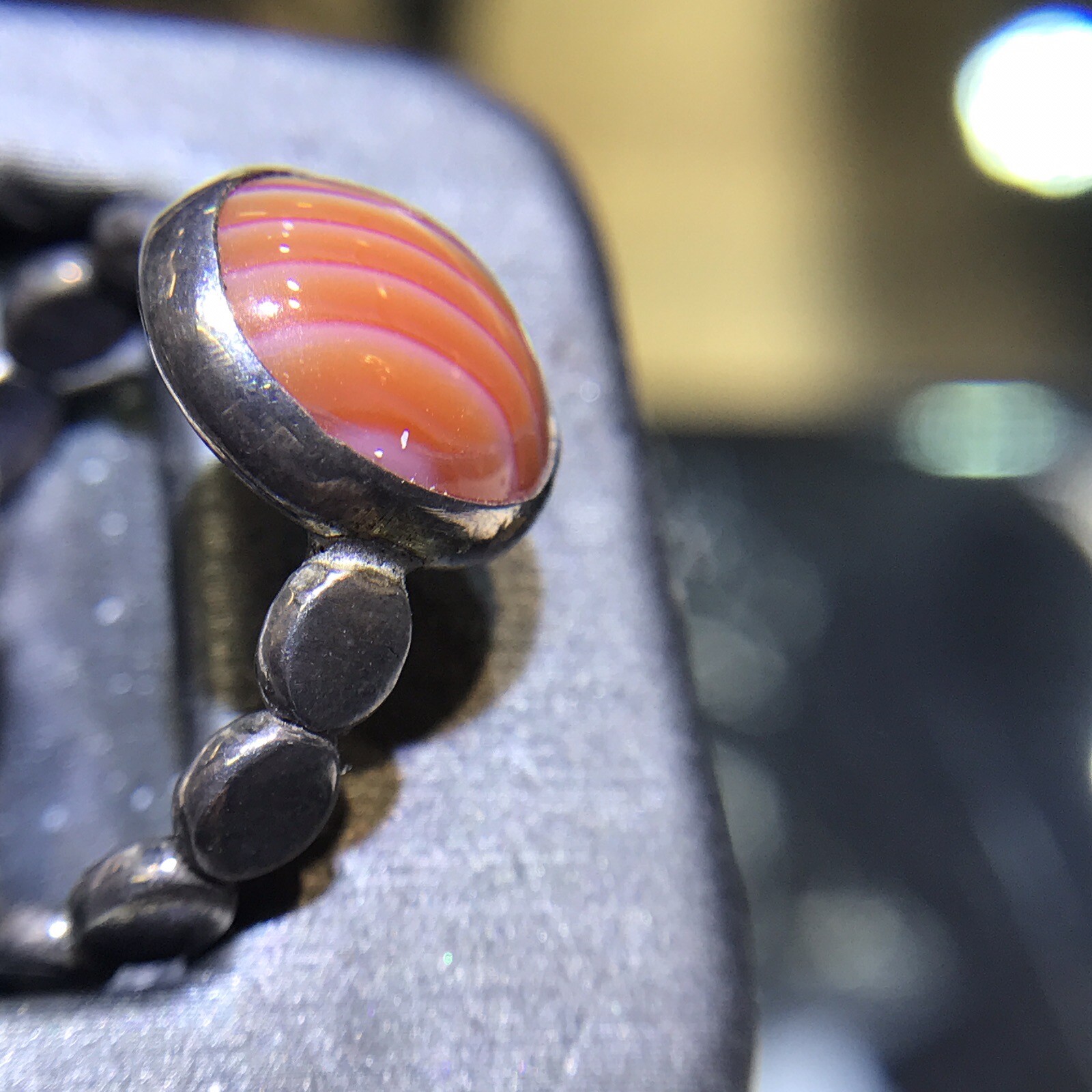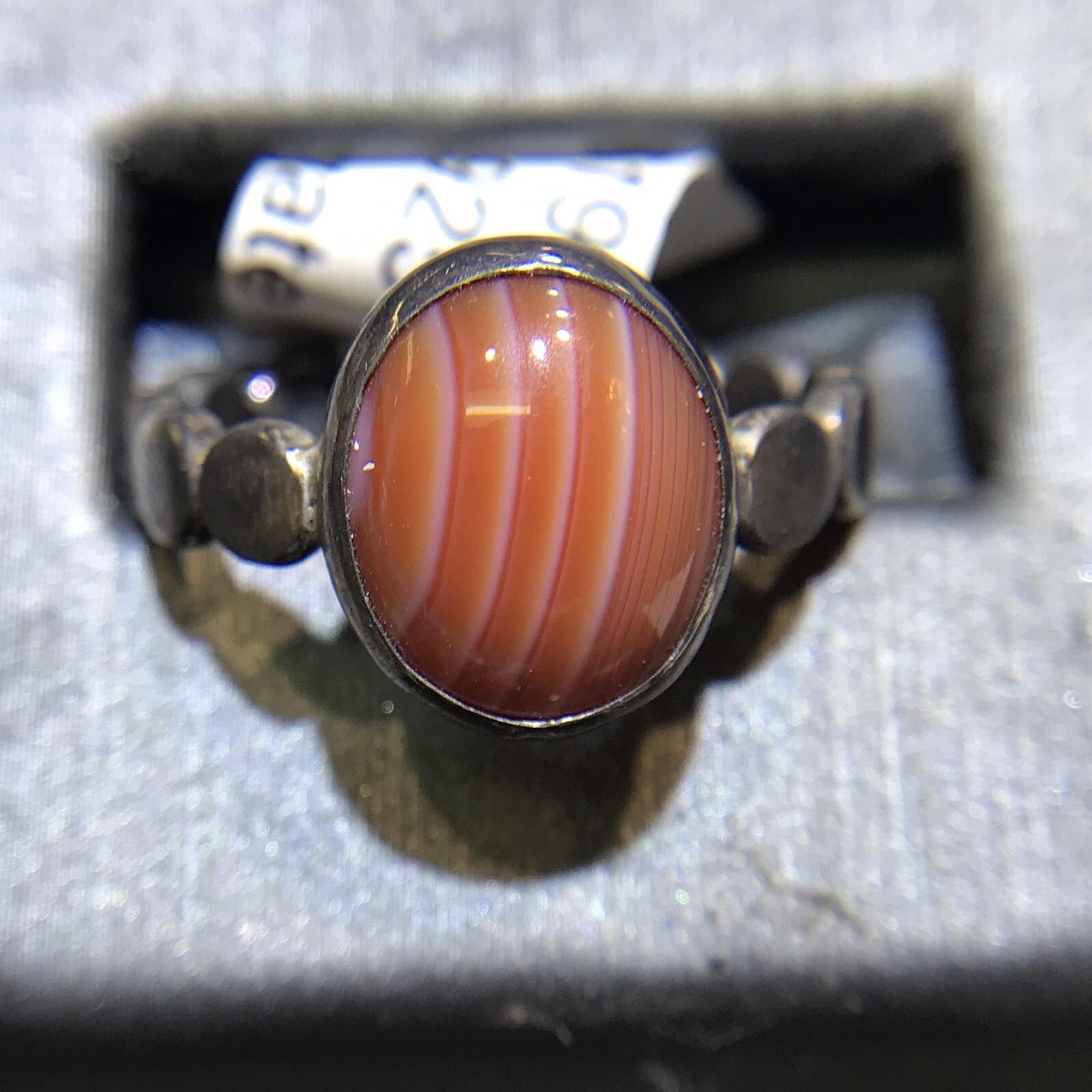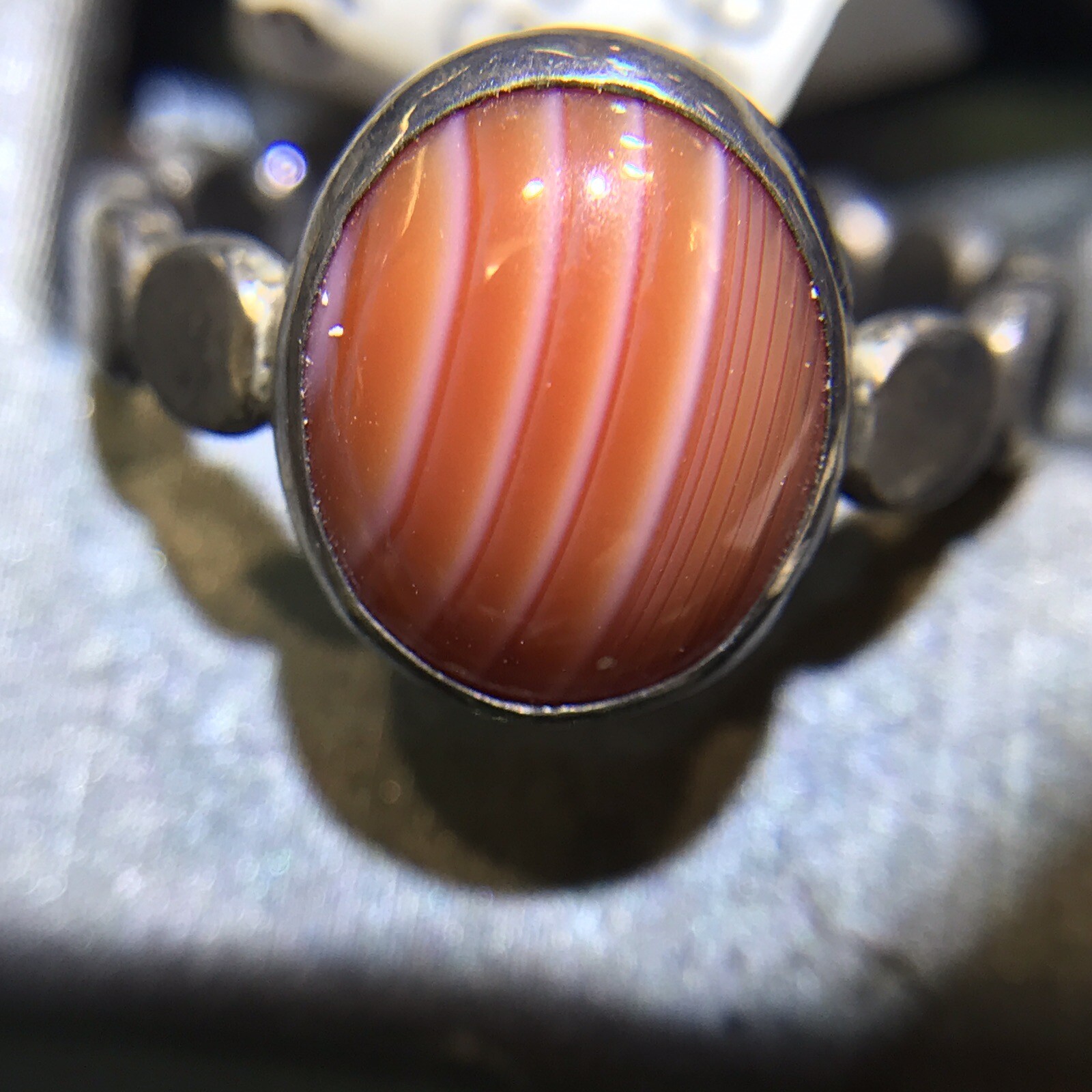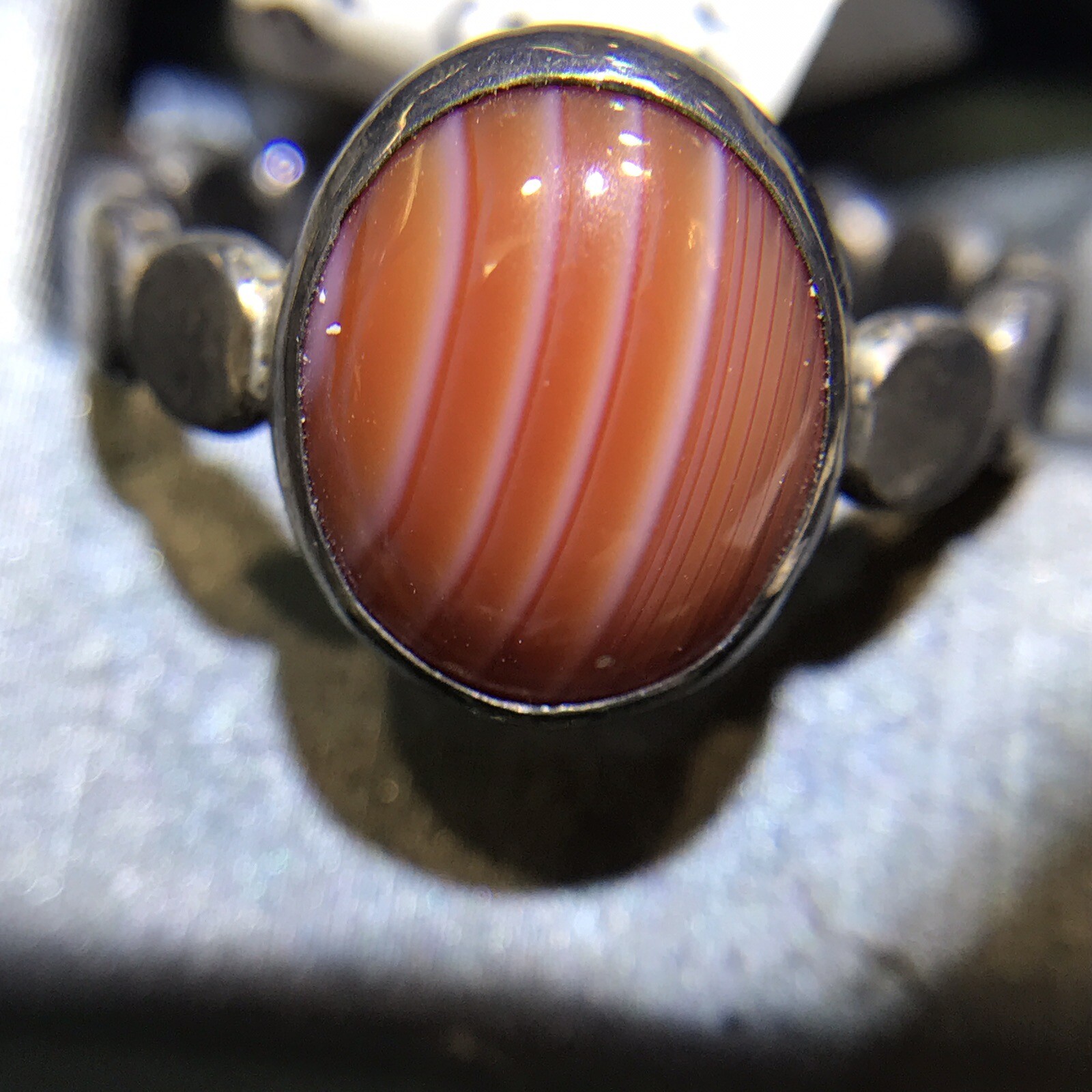 как выглядит Orange Stripe Agate Natural Ring Round Sz7.25 Bezel Set Silver 925 Design Band фото