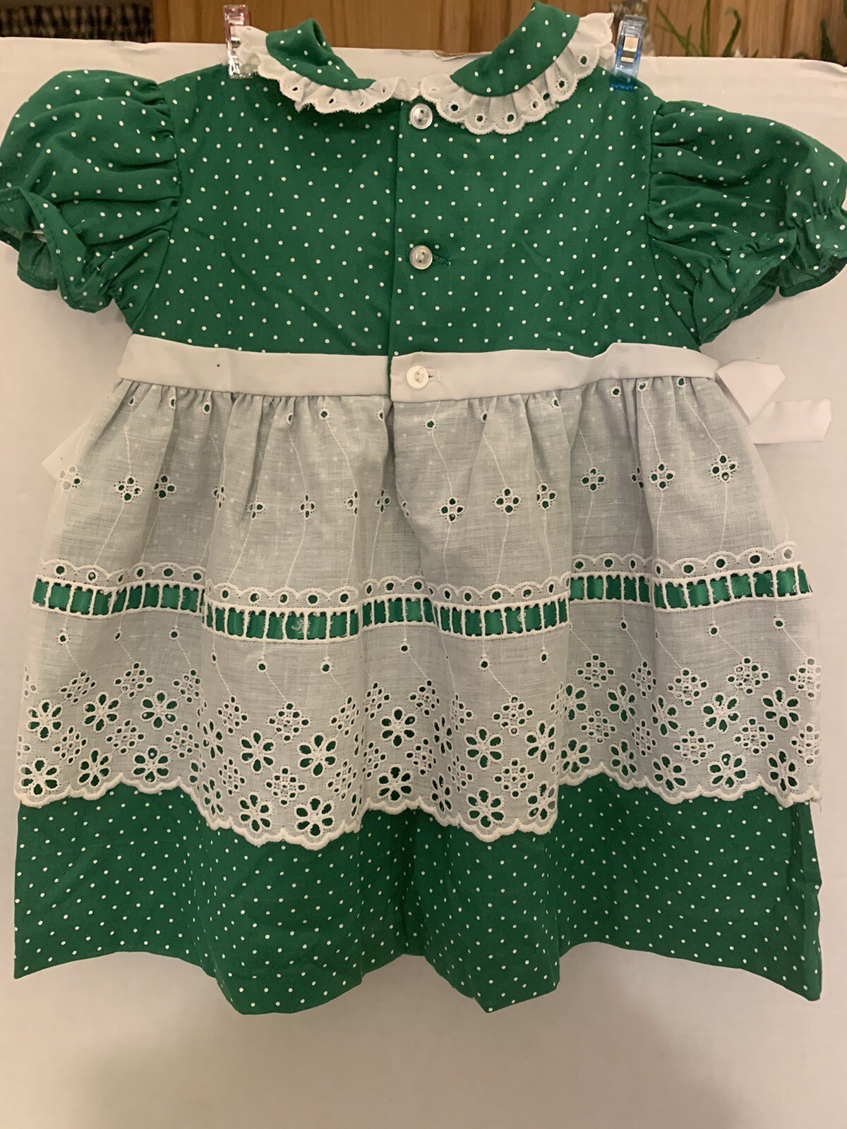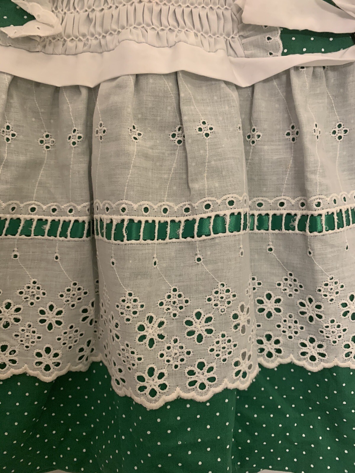 Vintage Polly Flinders Hand-smocked Size 12 Month Green Print White Dress