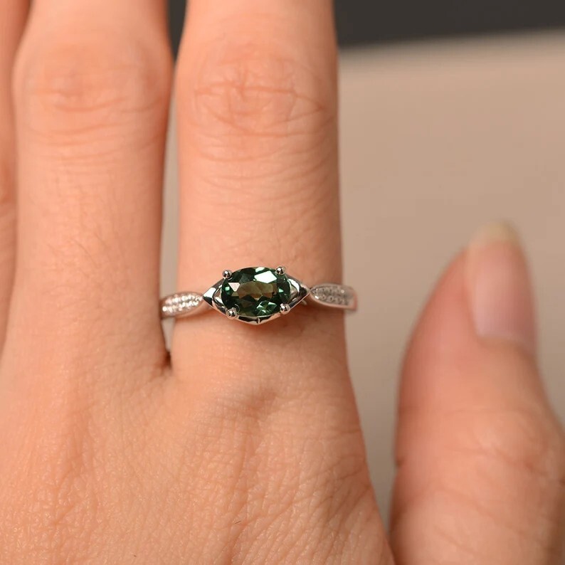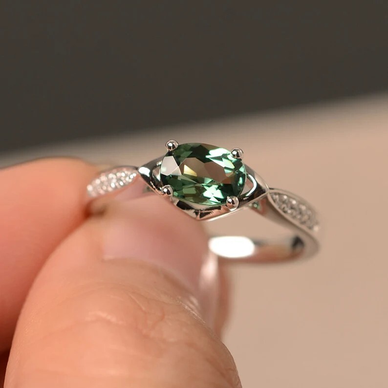 как выглядит Green Sapphire Ring, Sterling Silver Wedding Ring for Women Unique Sapphire Ring фото