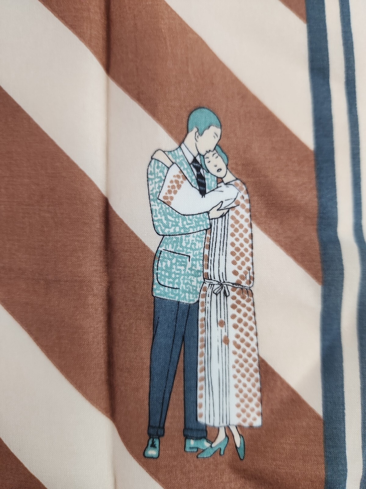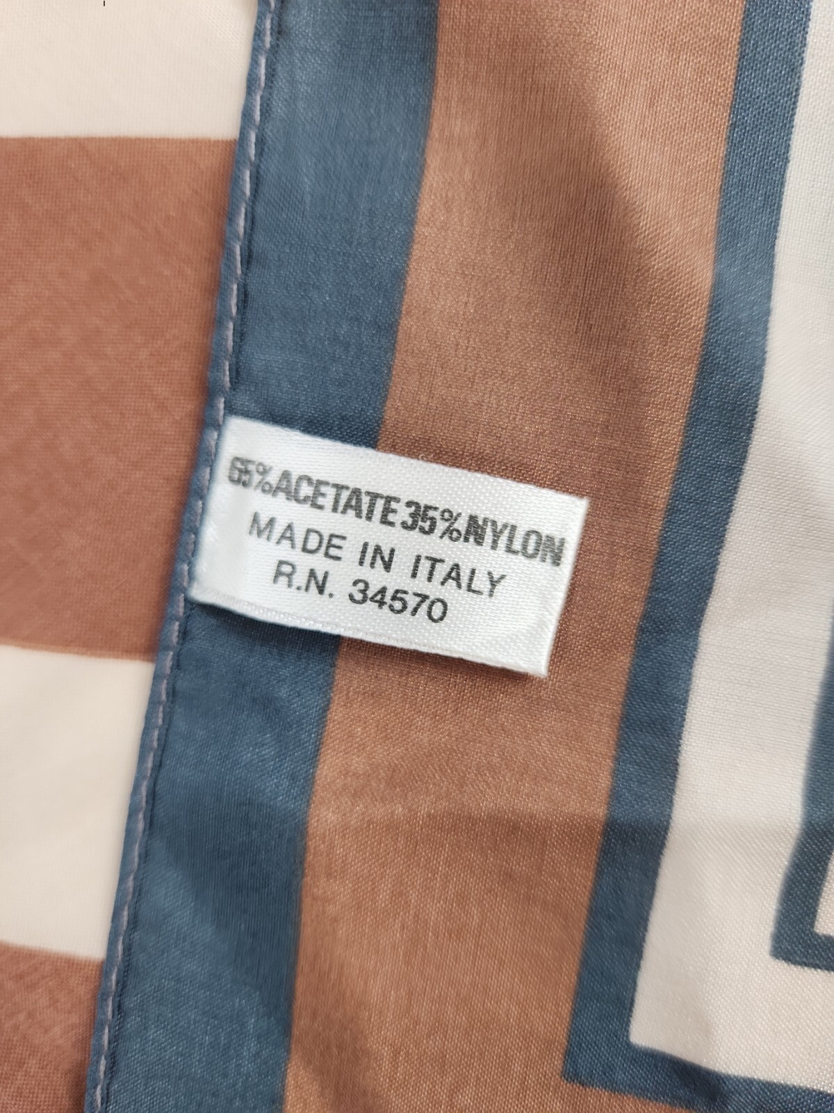 как выглядит Vintage geometrical Striped scarf square made in Italy Brown,Cream,Navy,Teal фото
