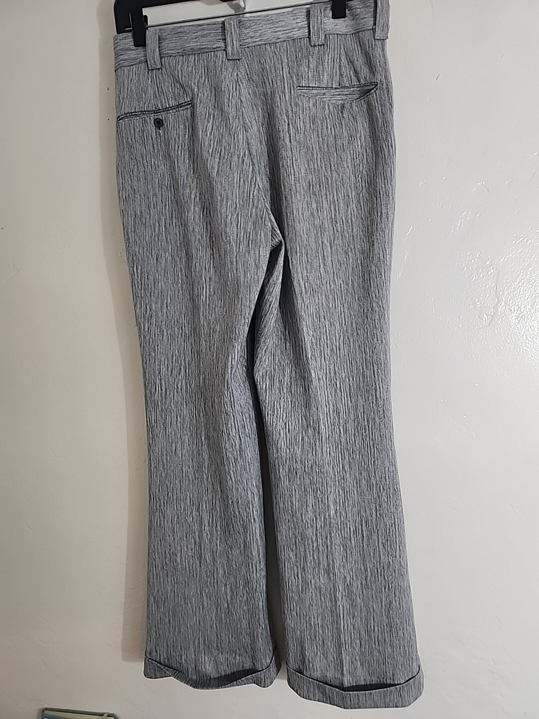 как выглядит vintage gray stripe polyester pants 70s cuffed flare disco 30 1/2 w 30L 1970s фото