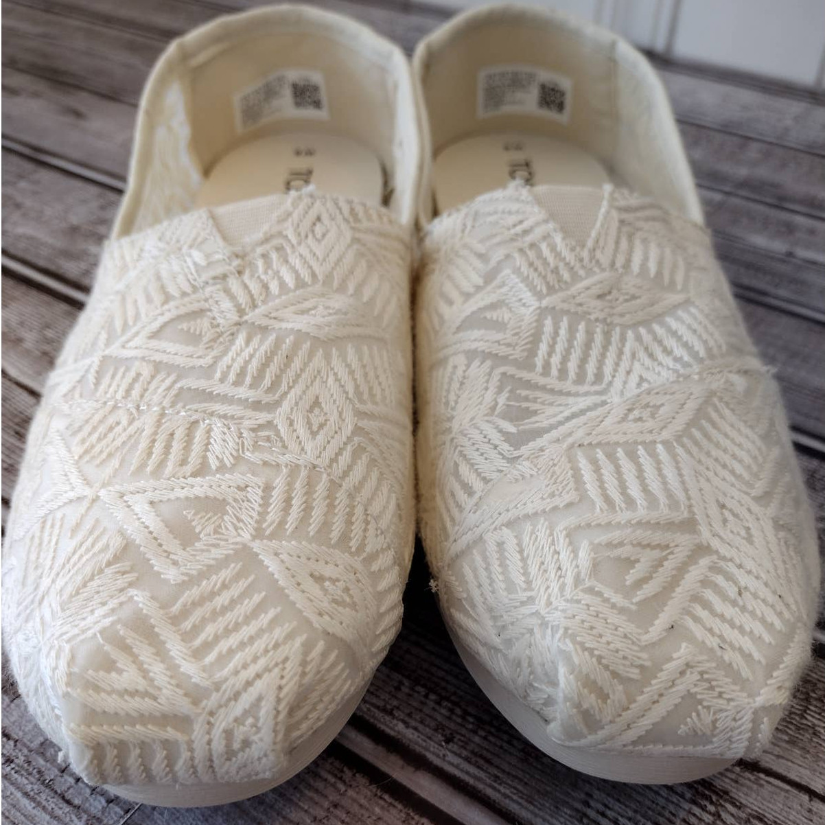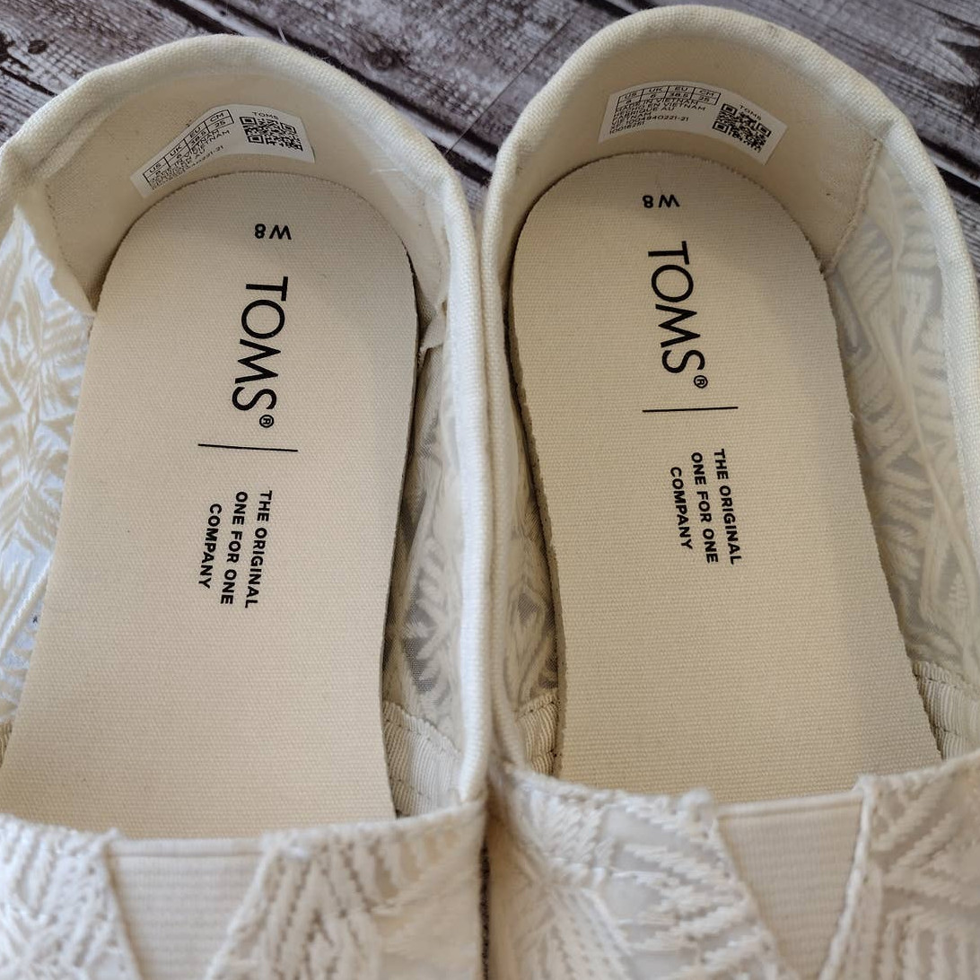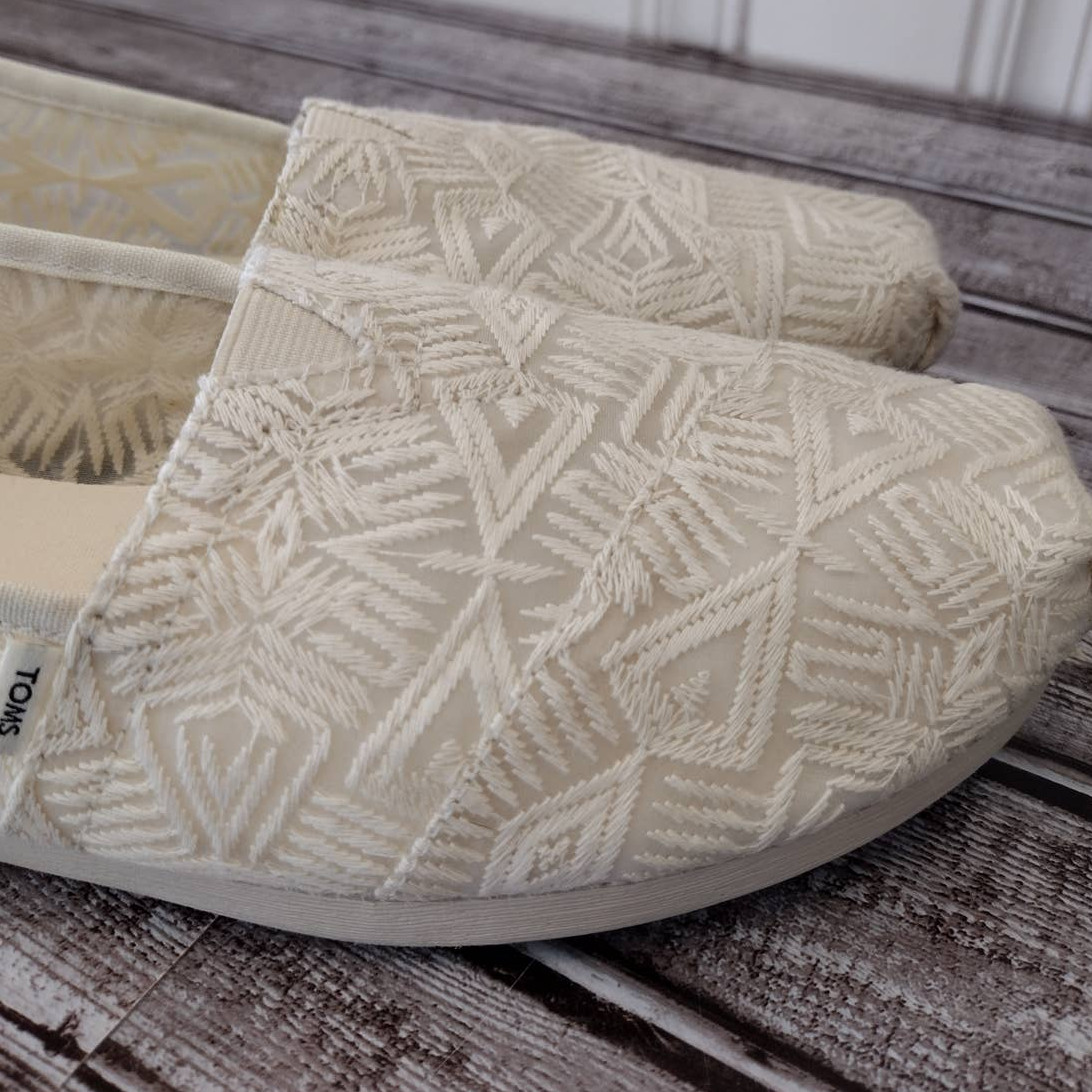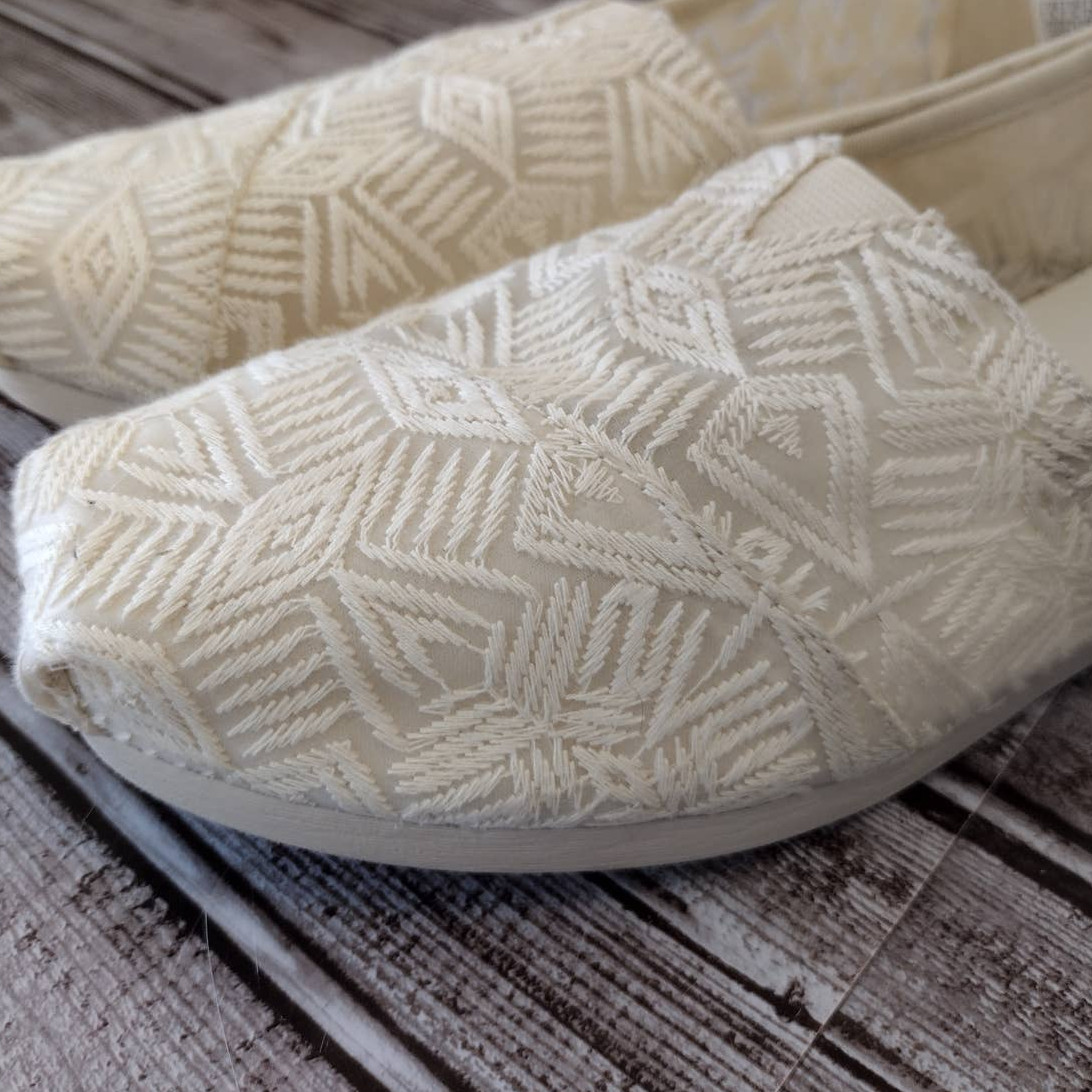 Toms NWOT Natural Geo Lace Fabric Boho Alpargata 3.0 Slip-On Shoes Women's 8