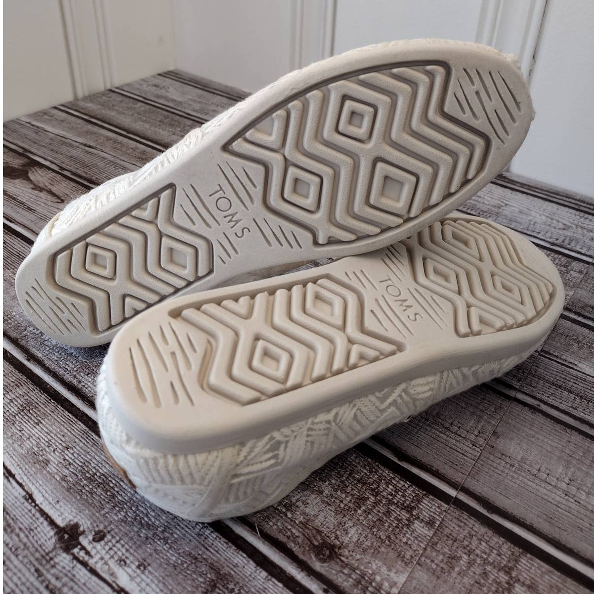 как выглядит Toms NWOT Natural Geo Lace Fabric Boho Alpargata 3.0 Slip-On Shoes Women