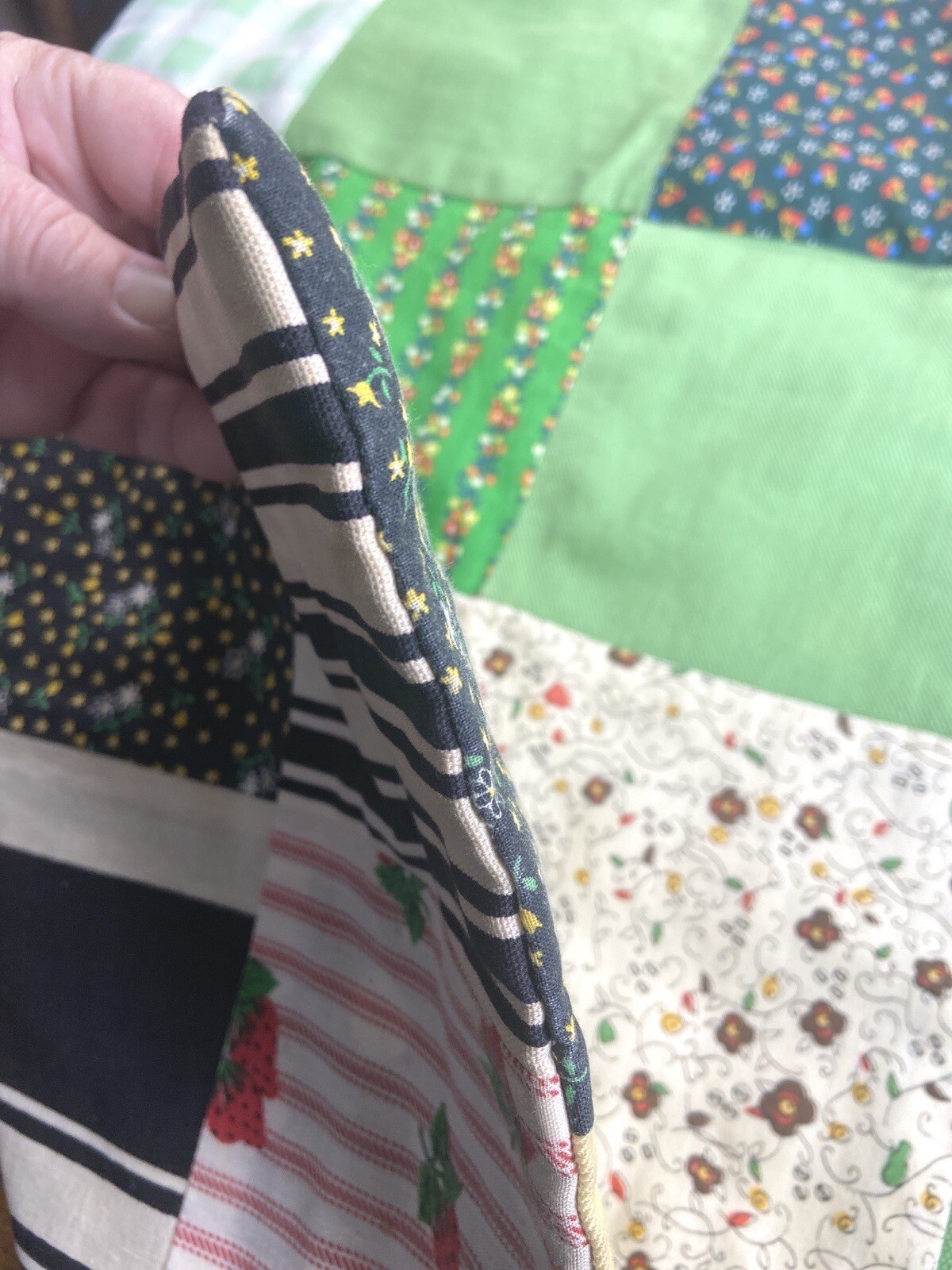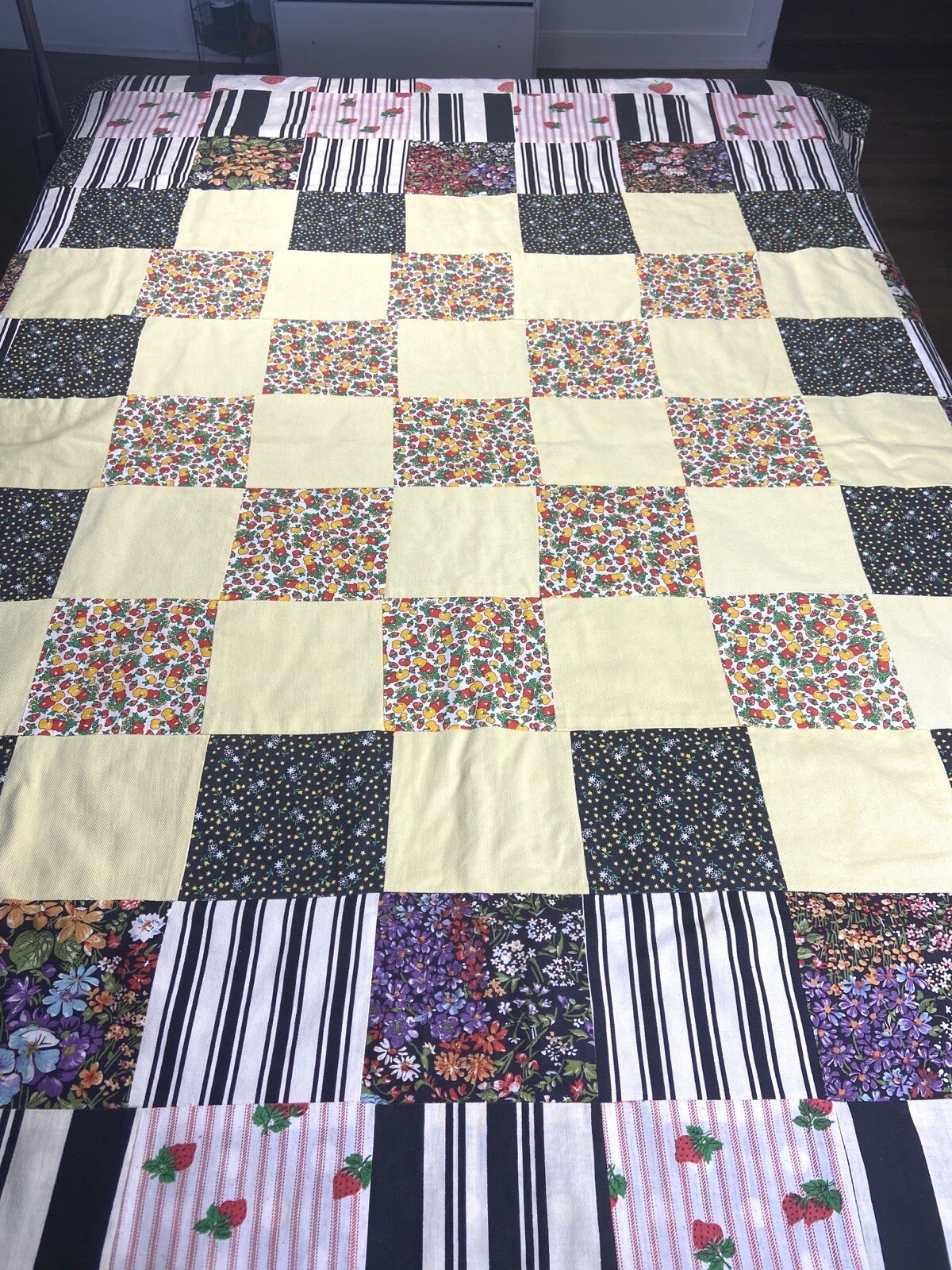 как выглядит Vtg Handmade quilt Blanket Bed 80"L x 50"W Mulitcolor Grandma Squares фото