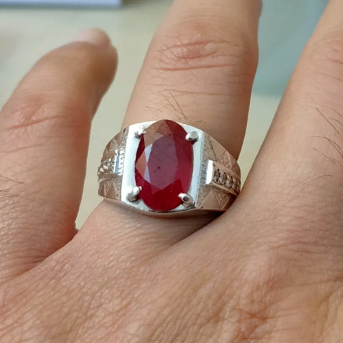 как выглядит Elegant Red Ruby In Oval Cut Handmade Band Christmas Ruby Gift Ring Silver 925 фото