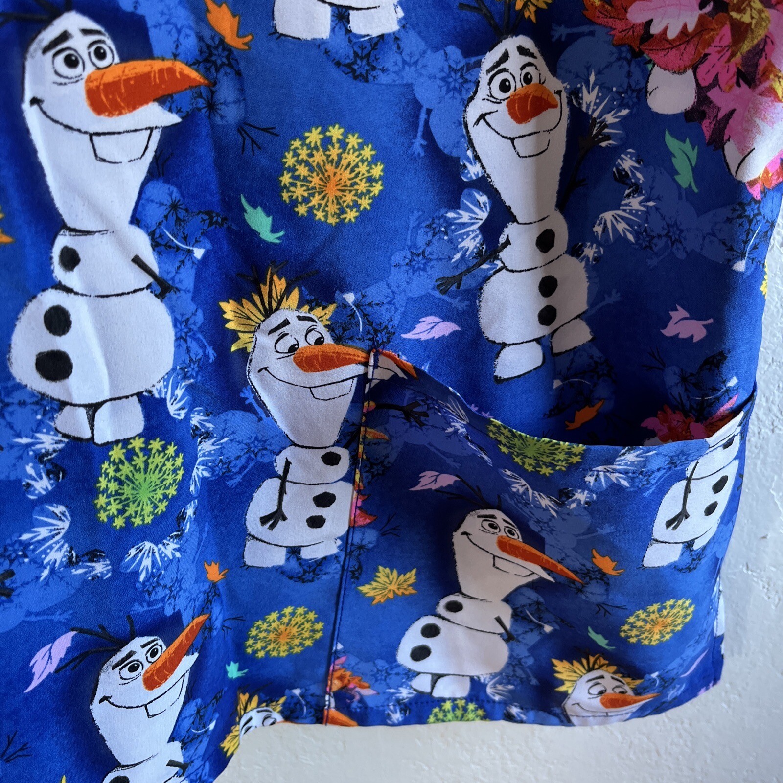 Womens Scrub Top Disney Frozen XL Snowman Silly Christmas Novelty Winter