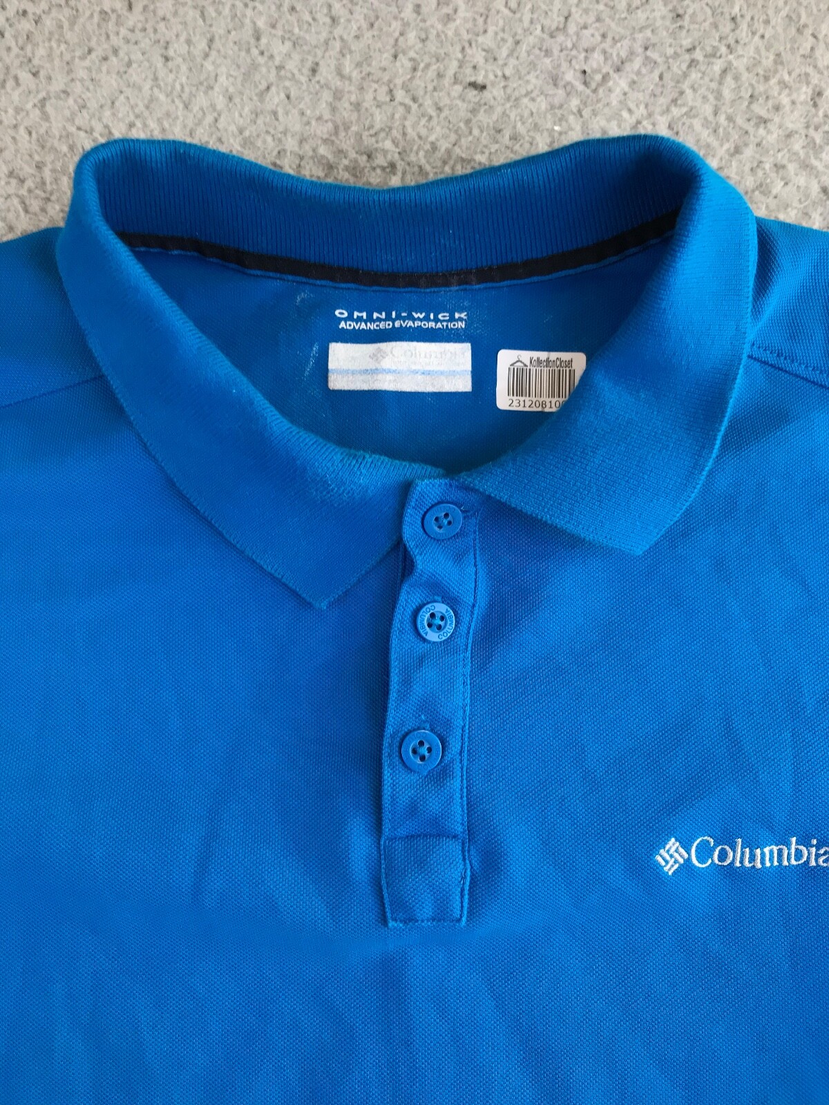 как выглядит Columbia Shirt Mens Large Blue Short Sleeve Polo Collared Omni-Wick Pullover фото