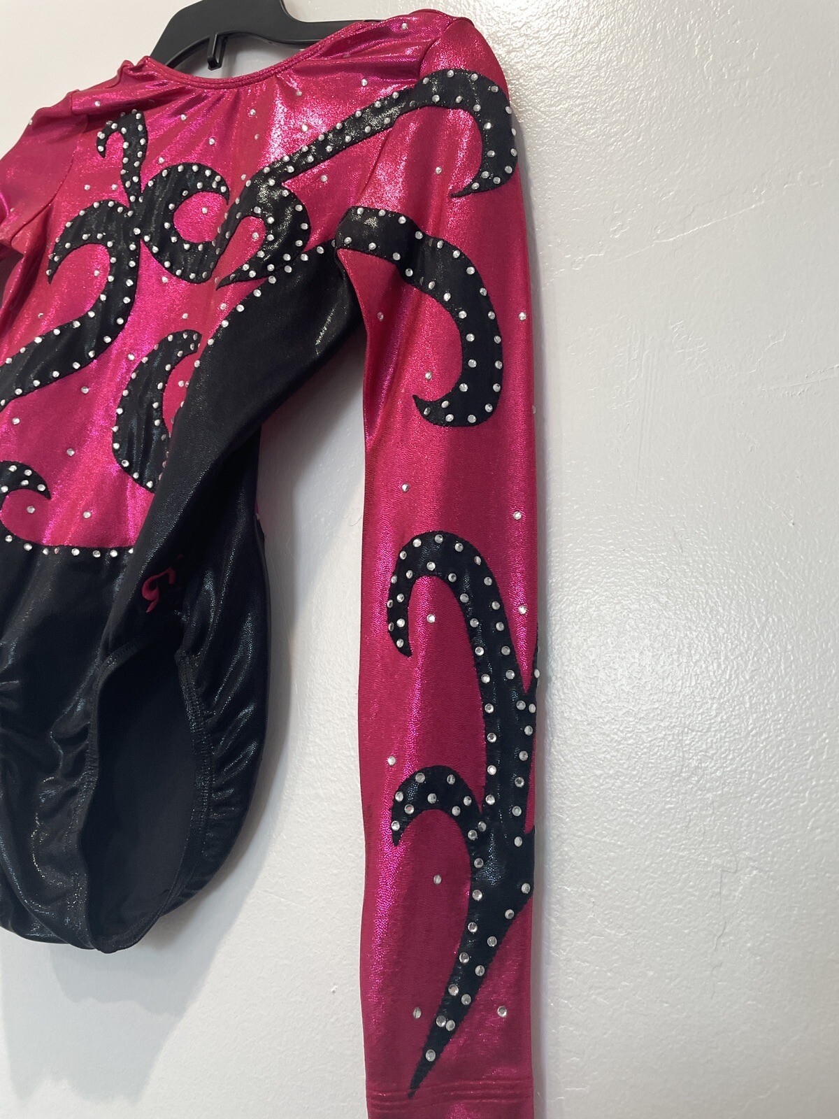 как выглядит Custom GK ELITE Leotard gymnastics SWAROVSKI RHINESTONE PINK Black AXS фото